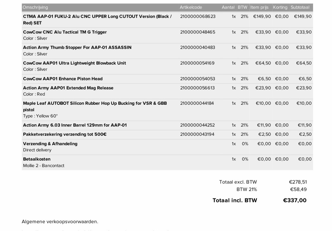 Wegens volledig stopzetten hobby verkoop ik hierbij mijn custom aap1 alle stukken die erop zitten staan bij de foto’s bij. Hop rubber is vervangen.