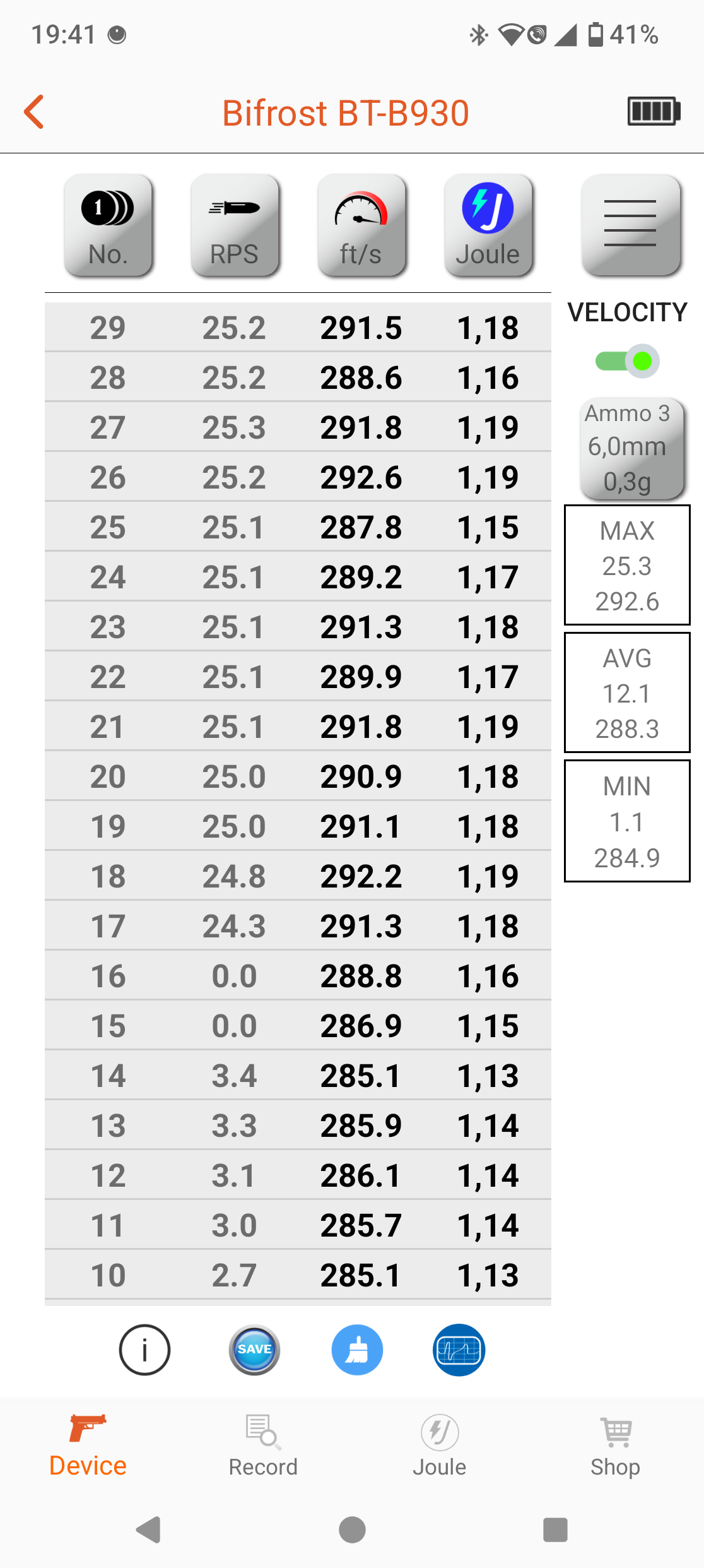 Met een 25c 1500Mah 11.1v lipo batterij haalt de replica een rof van 25 rps en een J van 1.17 gemeten zonder hop en met .30 BLS bbs. J kan aangepast worden naar wens.