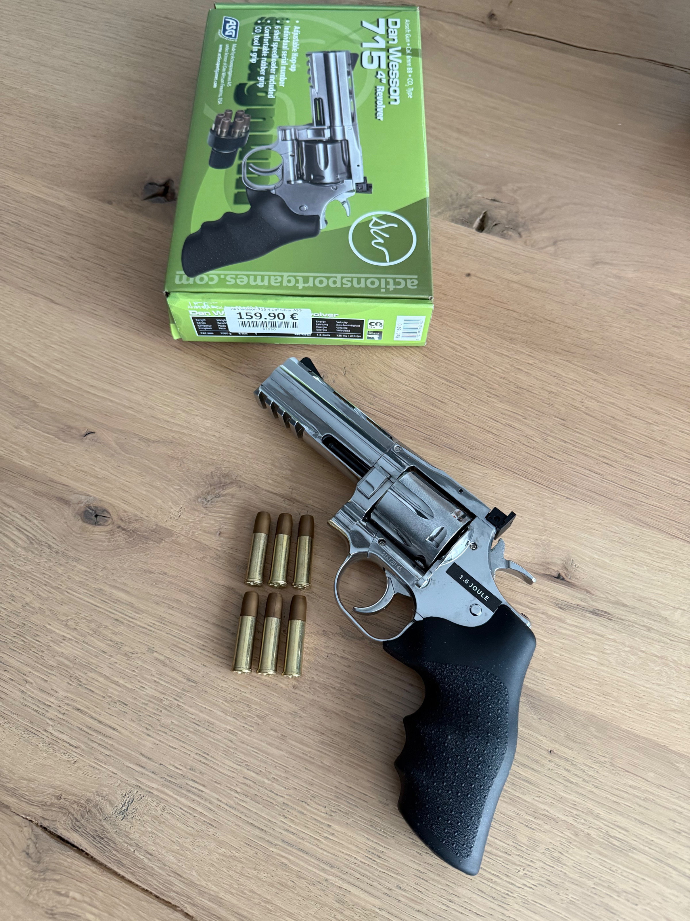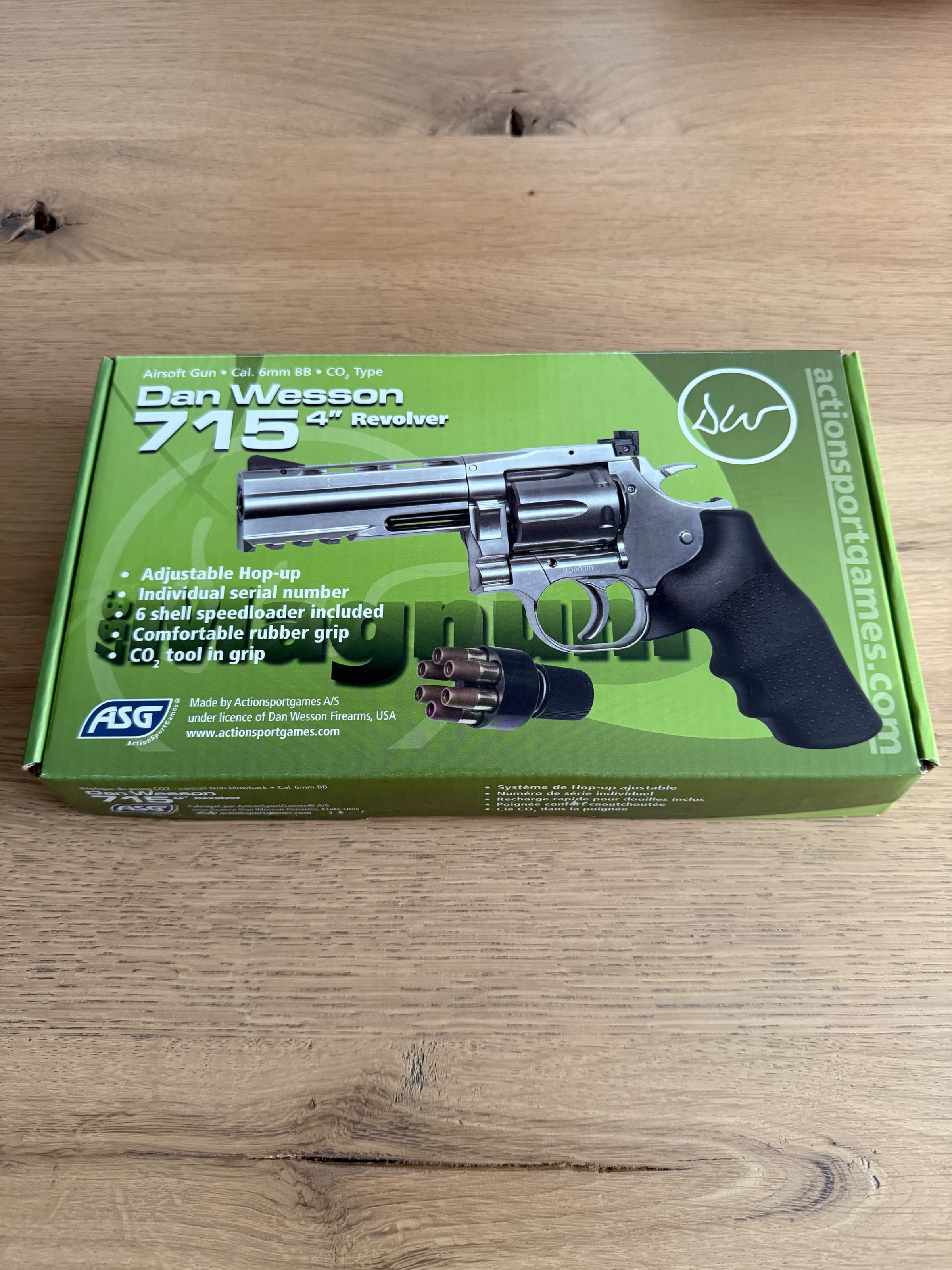Te koop aangeboden: Dan Wesson 715 4” CO2 revolver, een realistisch en volledig metalen airsoft revolver van ASG, geproduceerd onder officiële licentie van Dan Wesson Firearms (USA).