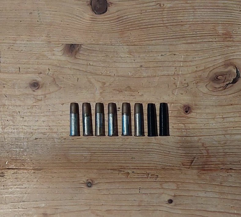 geleverd bij de revolver zijn 8 shells, hiervan zijn 6 orginele high power shells en 2 3d geprinte low power shells.