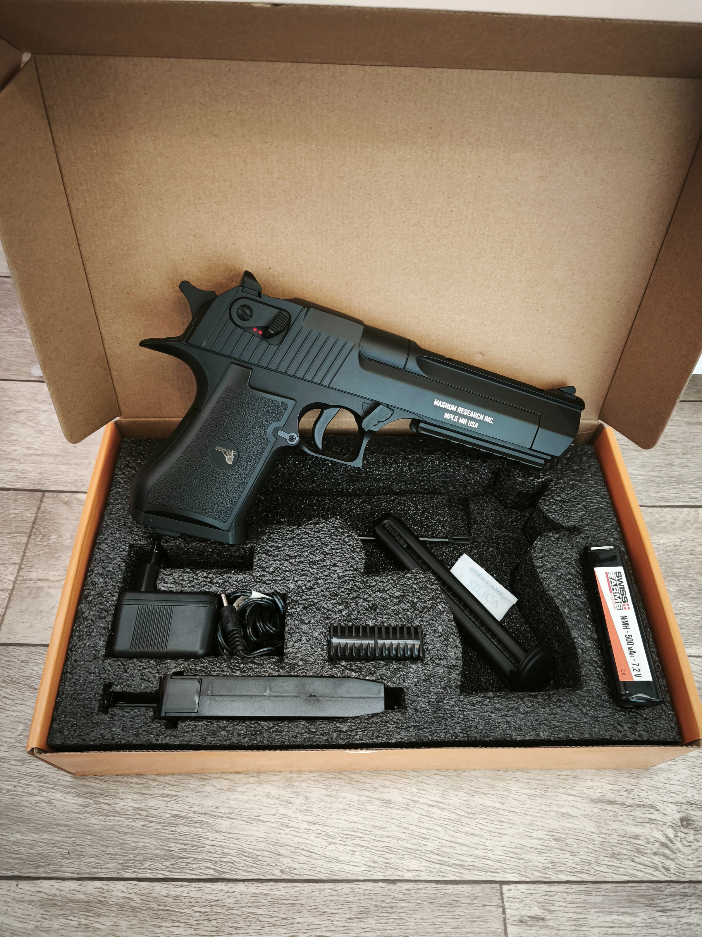 Bonjour, je vend mon Désert Eagle .50AE RTP AEP neuf jamais servie juste ouvert la boite pour faire les photos.