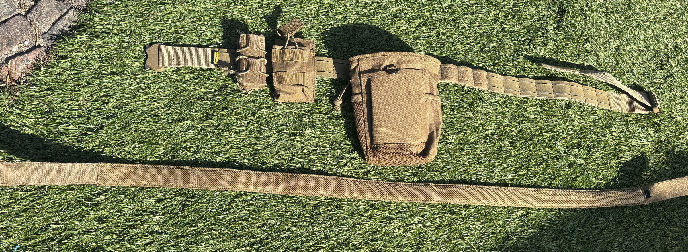 Ik bied hierbij een Emersongear XL Tactische LCS Combat Riem, m4, pistol en dump pouch TAN aan.