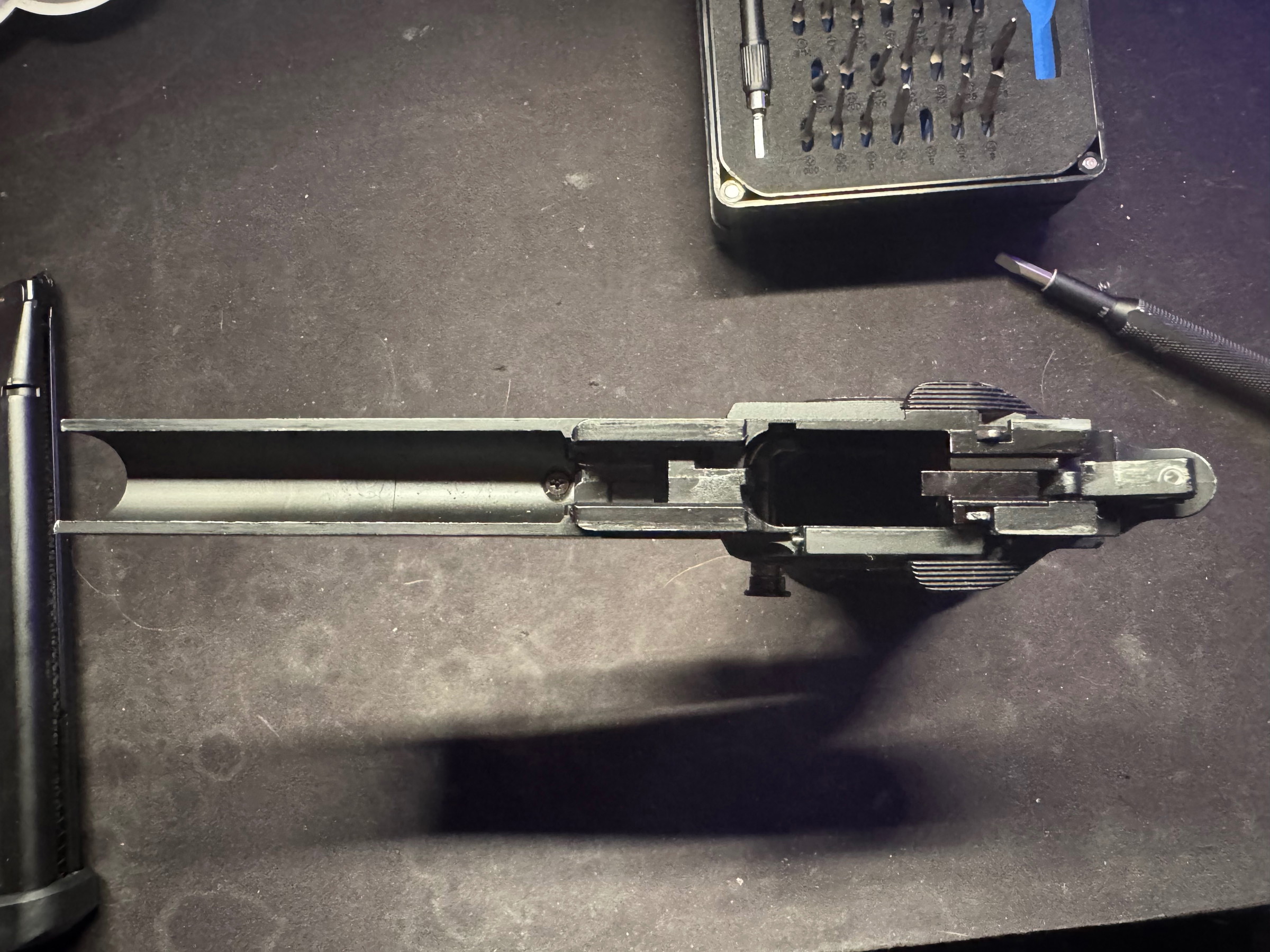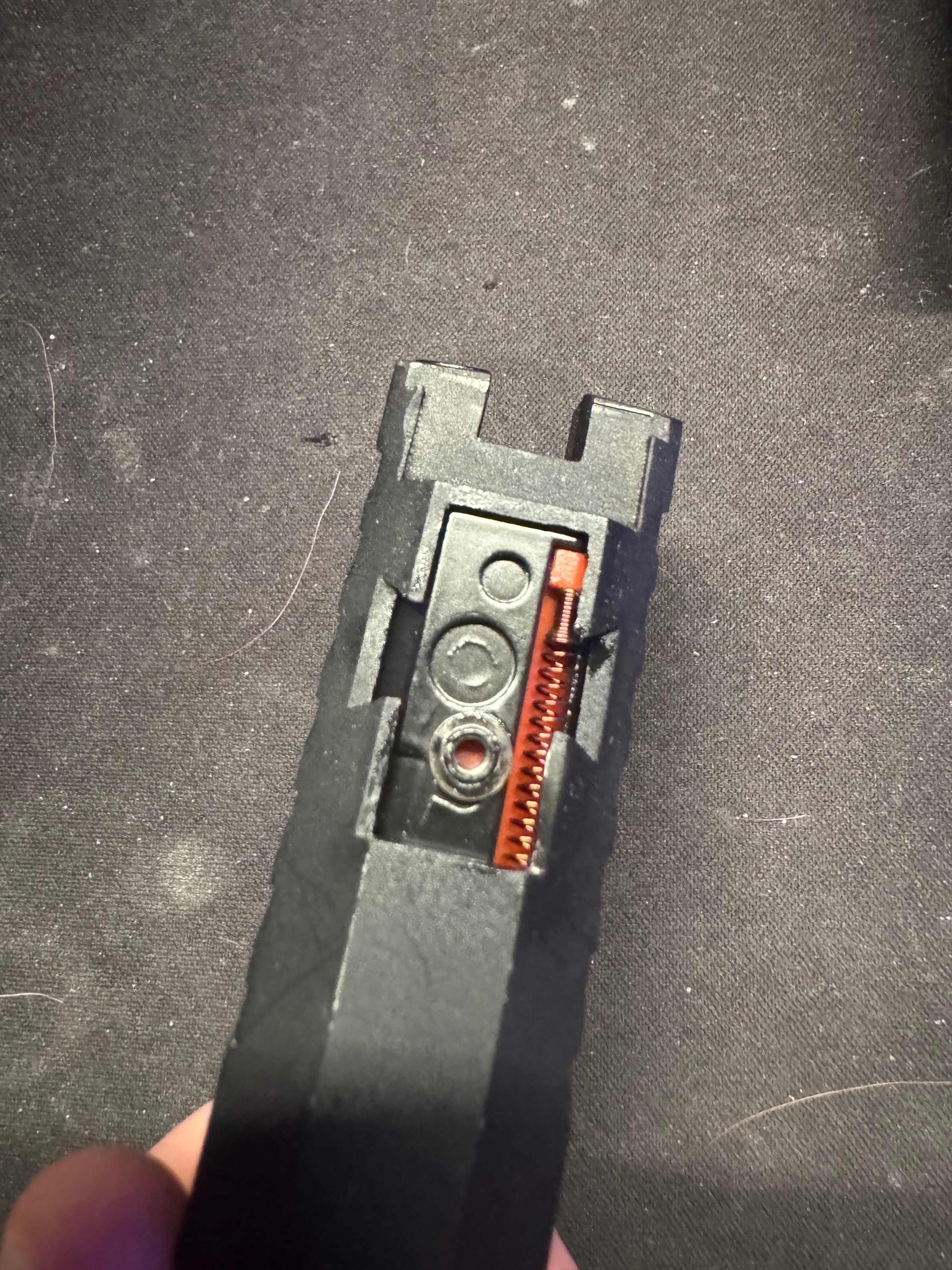 Zal ook komen met een gloednieuw magazijn (in bestelling, die op de foto ligt er als ‘placeholder’), de vorige lekte maar de baseplate kon ik zelf niet verwijderen (een bekende van me heeft ernaar gekeken; de schroef zat IN de pin die de baseplate in plaats houdt).