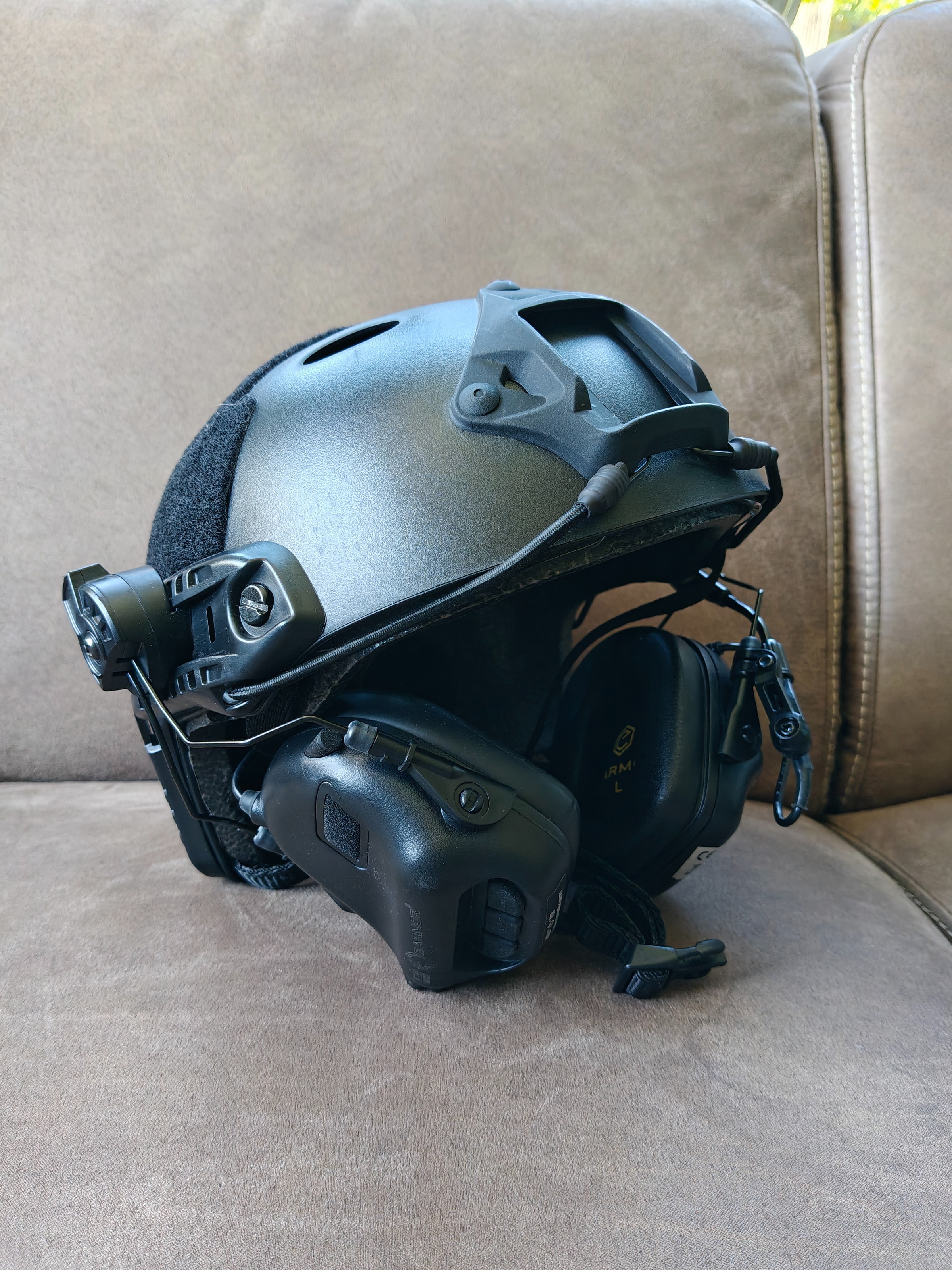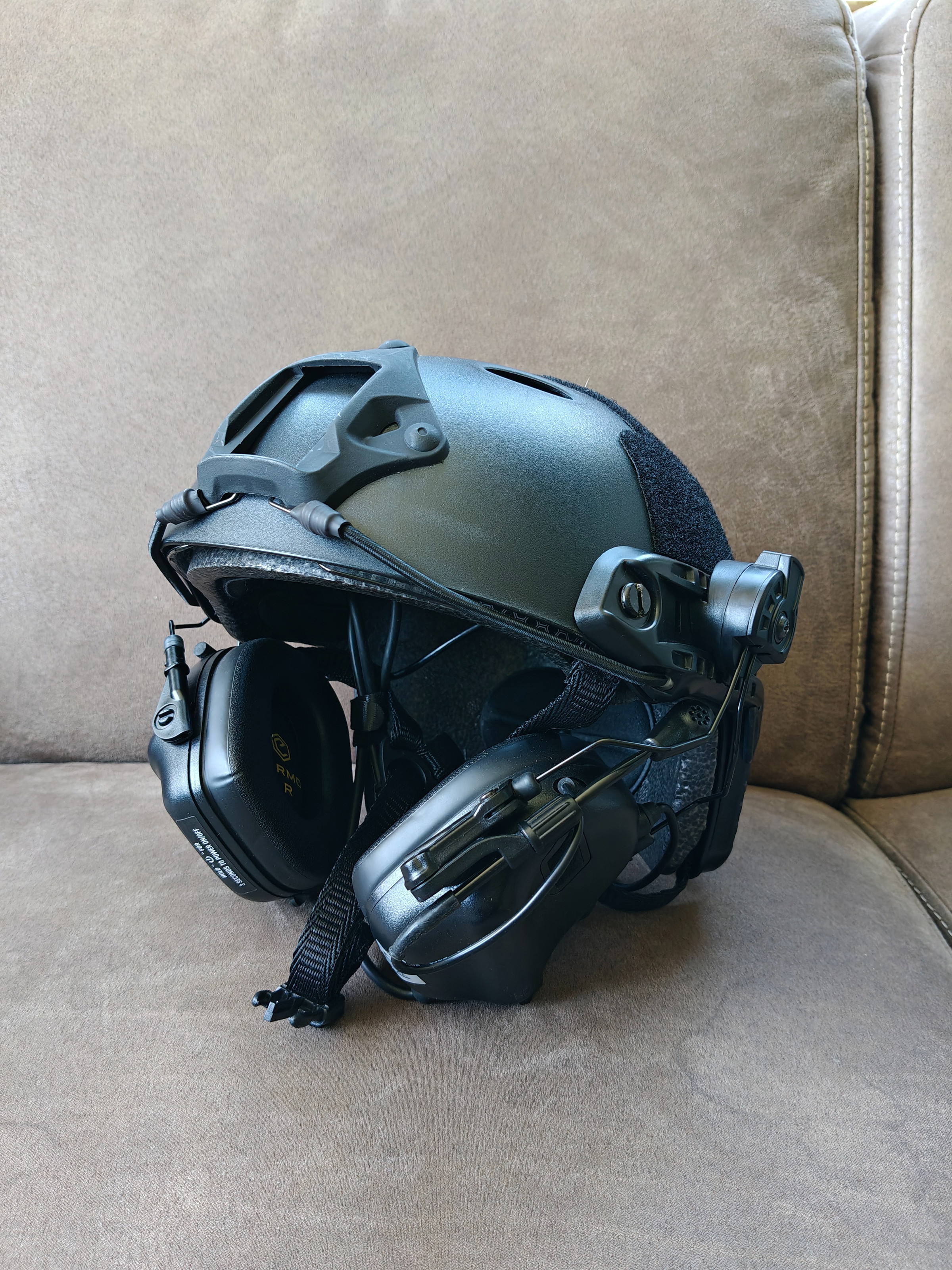 Een helm in uitstekende staat met een goed werkend Earmor communicatie headset. De set is bijna niet gebruikt en doet het nog perfect!
