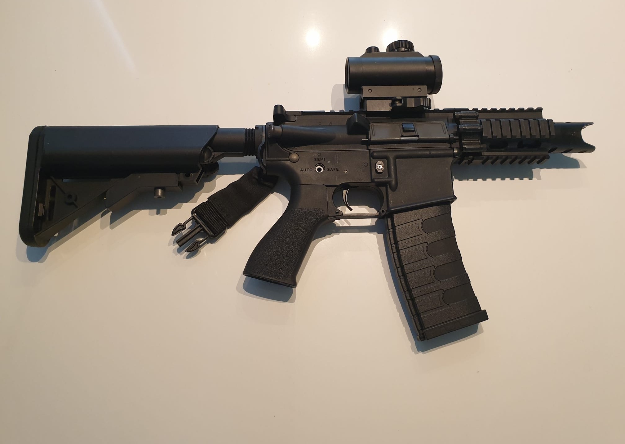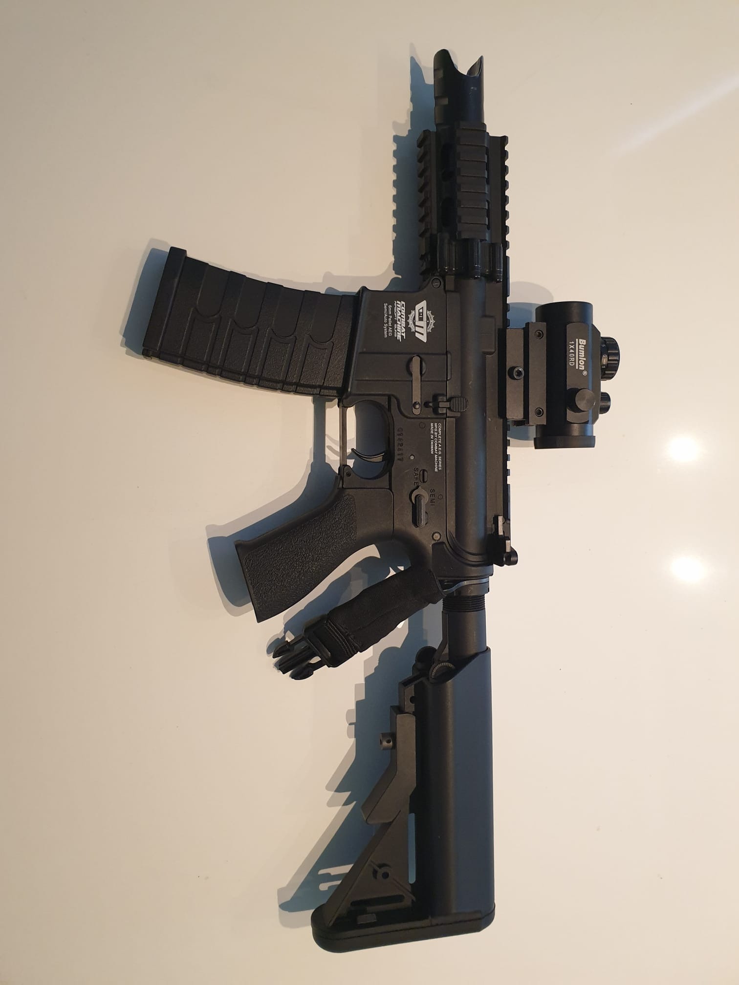 G&GFirehawk met red dot prima staat ( enkel selectknopje kwijt gespeeld , heeft geen invloed op het spelen , kost een paar Euro schuet echt als een lazer