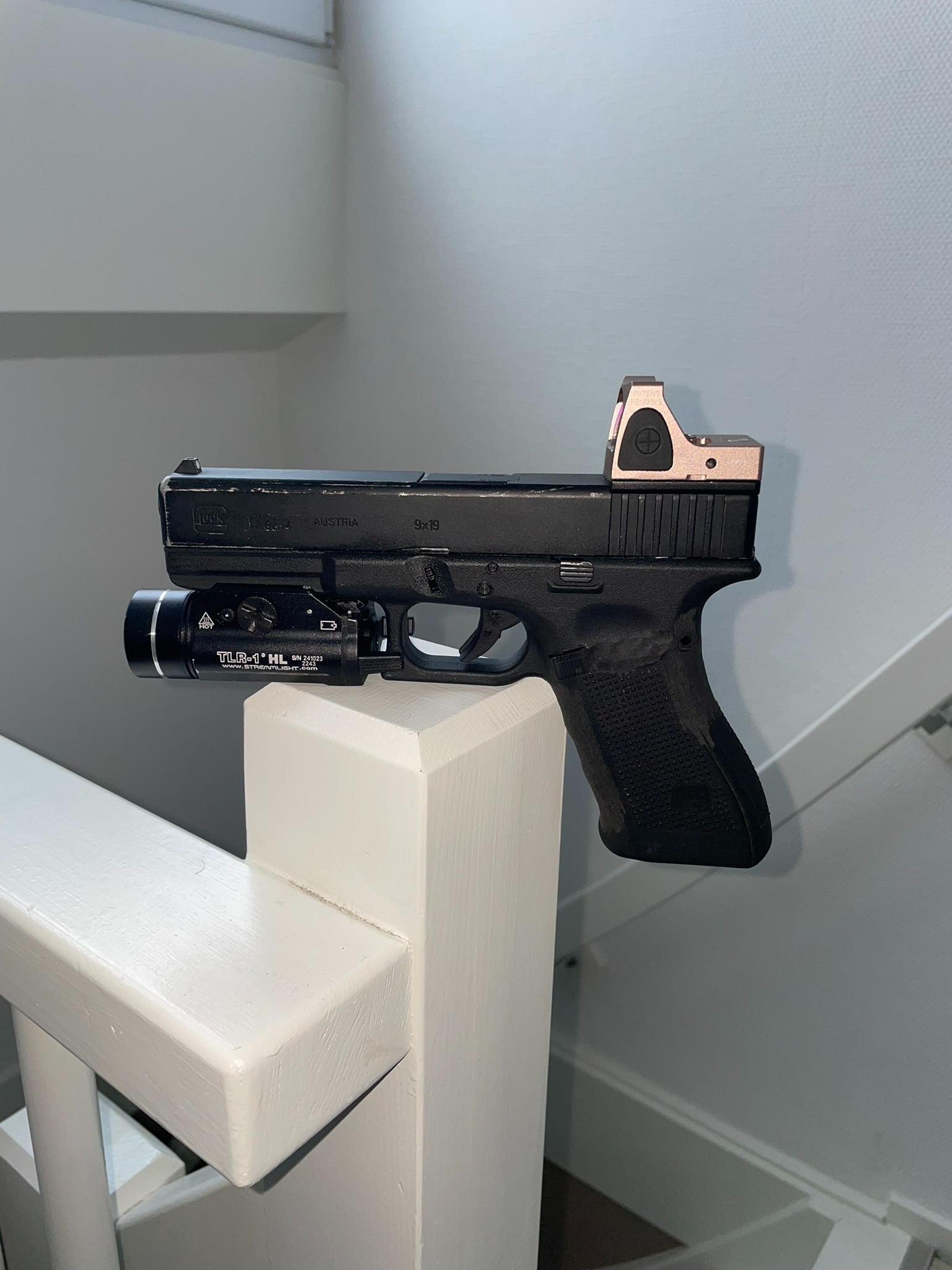 • Replica Streamlight TLR-1 (gemonteerd) — functionele look en extra nuttige verlichting/positie