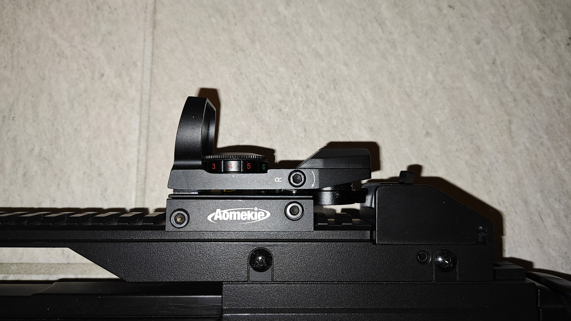 Im Angebot enthalten ist dazu ein weiteres Magazin mit ebenfalls 400 Schuss Kapazität und ein Reddot Visier zum einfacheren Zielen von Aomekie.