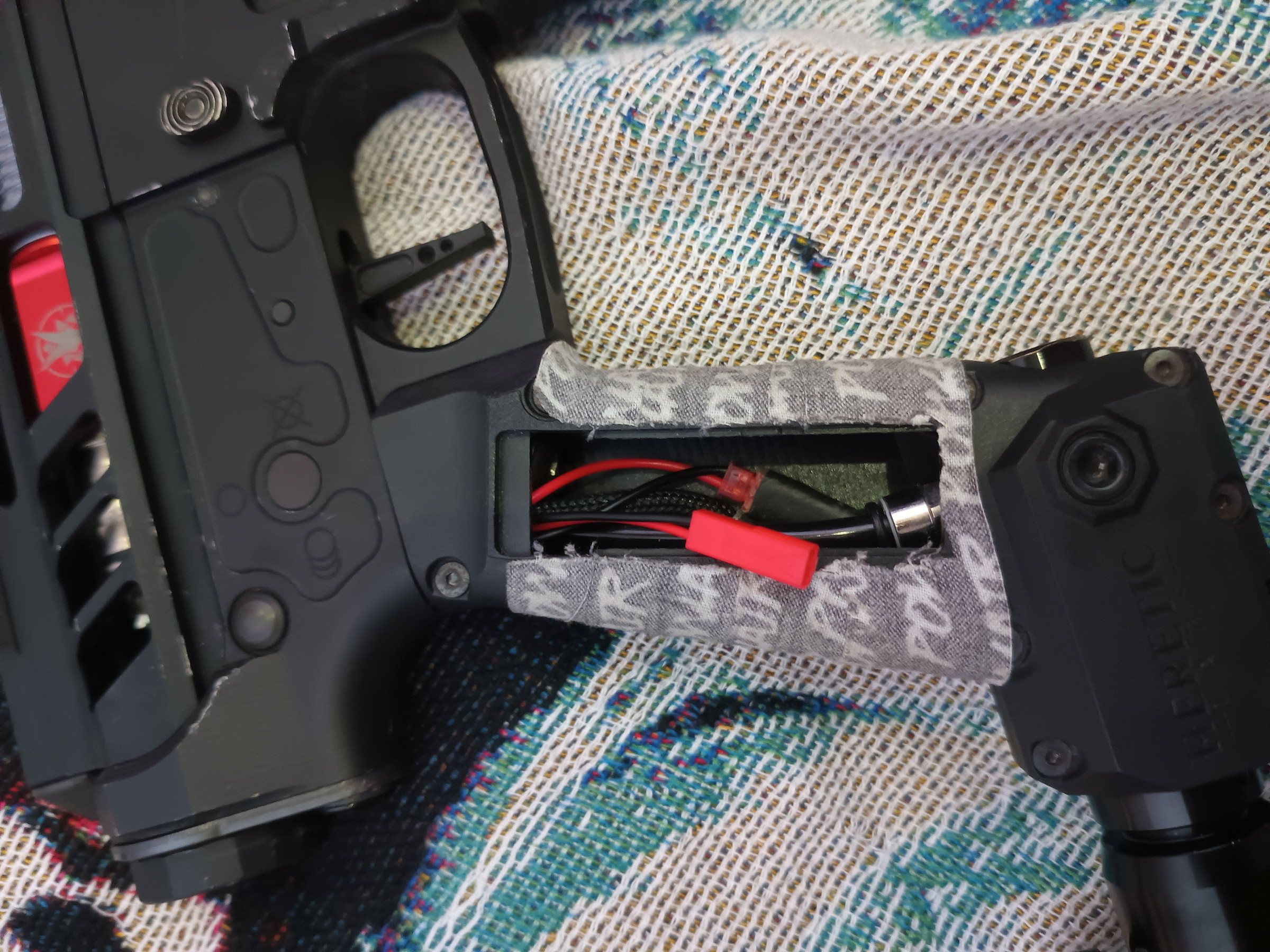 Replica is voorzien van een aan/uit knop op de achterkant zodat je lipo erin kan blijven zitten (meegeleverd een Titan 7.4v lipo), zonder dat je batterij leegloopt.