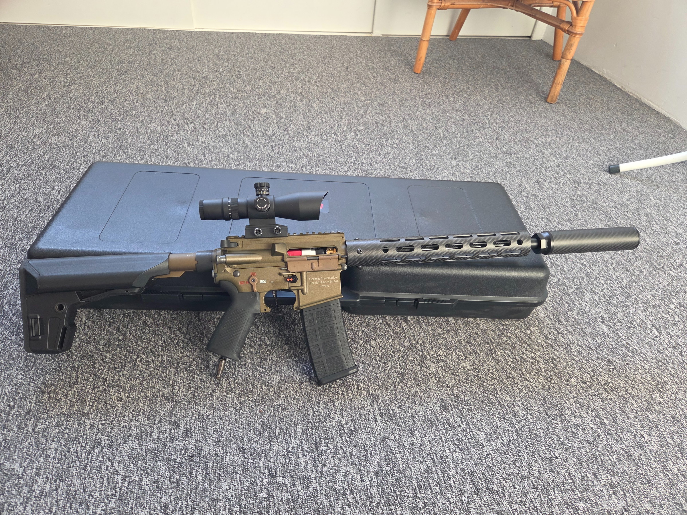 Ik stop met airsoft en daarom bied ik mijn HK416 DMR te koop aan.