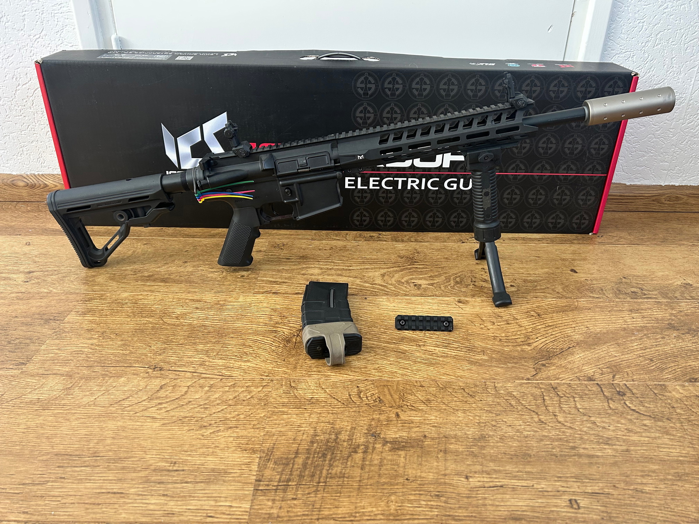 Hierbij verkoop ik mijn ICS Peleador. Het gaat om een AEG met split gearbox. De gun is verder volledig stock. Ik heb er altijd met plezier gebruik van gemaakt maar ik heb nu geen tijd meer voor mijn hobby dus deze zal de collectie helaas ook moeten verlaten.