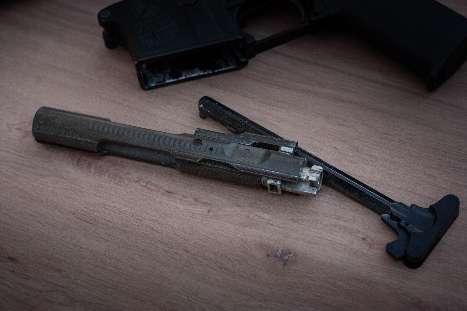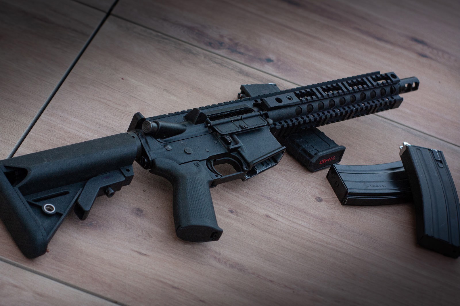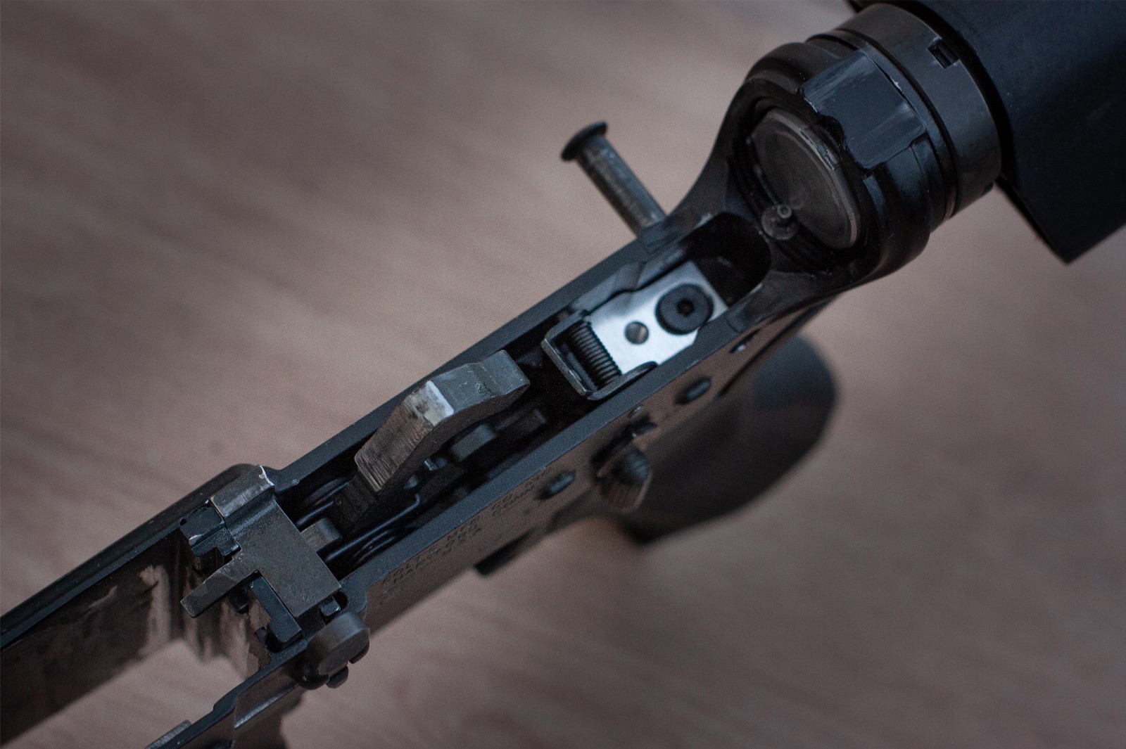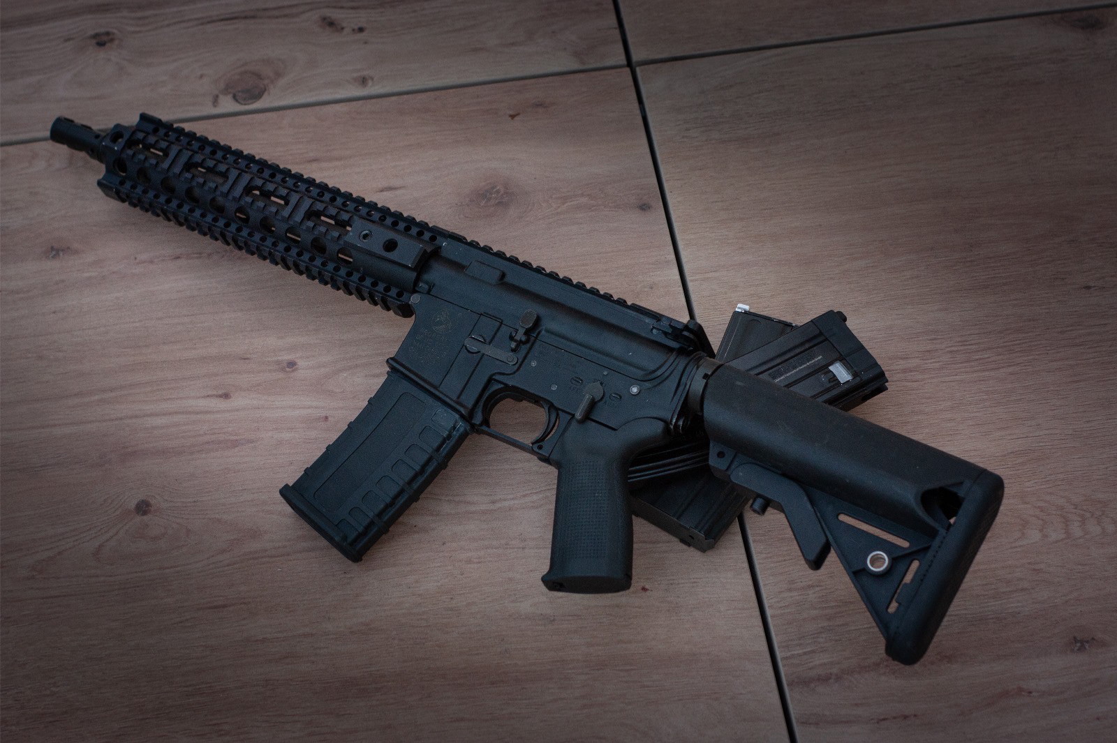 Additionally, the hop-up can be adjusted directly via a grub screw in the upper receiver. Installed are a steel bolt lock, Wolverine RAS, real steel PTS grip, and a SOPMOD stock. The two GHK magazines have been upgraded with aluminum feed lips.