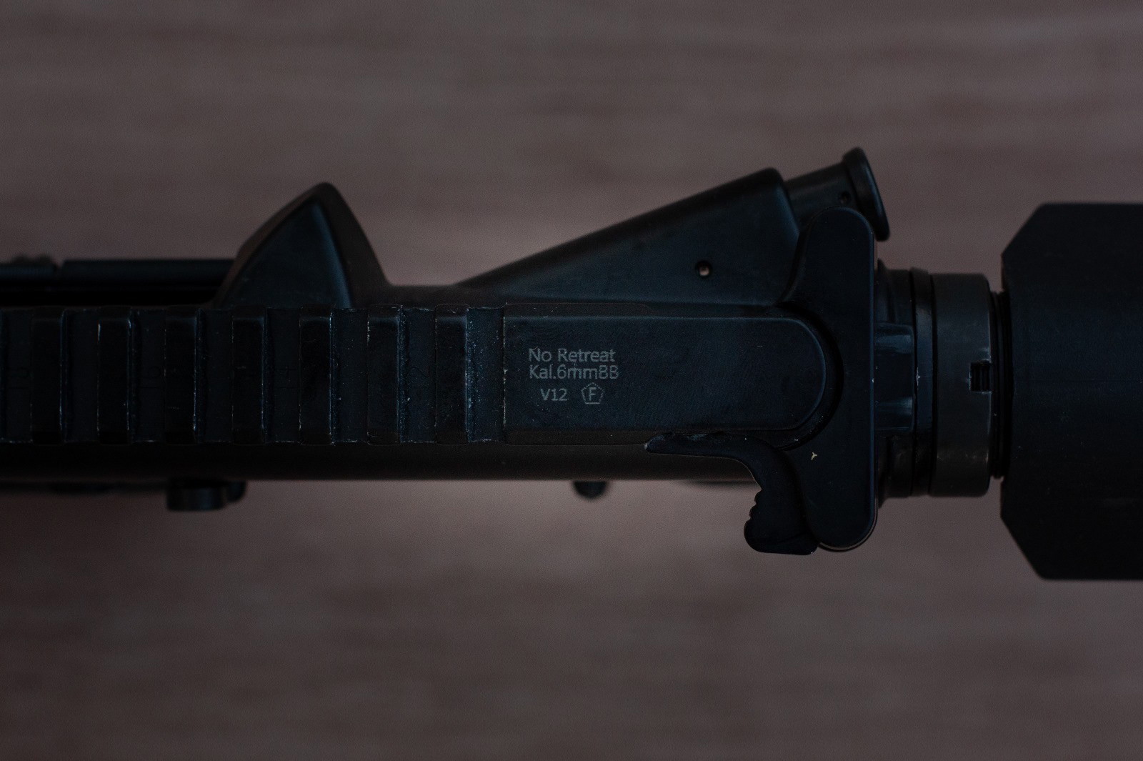 The rifle works flawlessly — it’s a little monster. With 0.40g BBs, it outperforms some upgraded guns in terms of range, and it has a satisfying recoil. It has been modified to accept GHK magazines, which feed perfectly. I’ve also fitted a VFC STANAG mag to the rifle, and it works and feeds without issues as well.