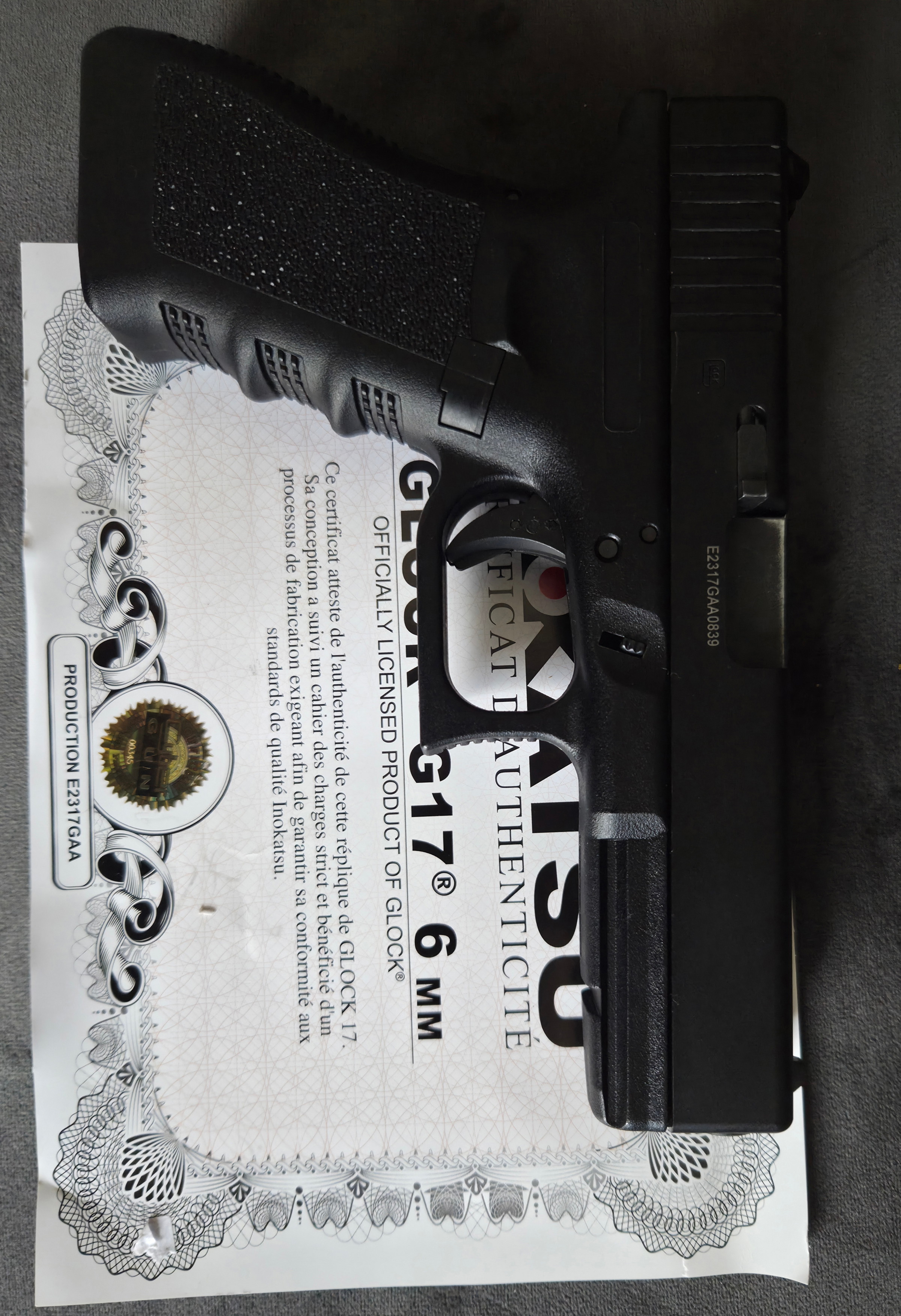 De Glock komt met officieel Inokatsu licentie ( overeenkomende codes ), 1 co2 magazijn, en de glock wapenkoffer. Dit is vanaf de fabriek standaard meegeleverd.