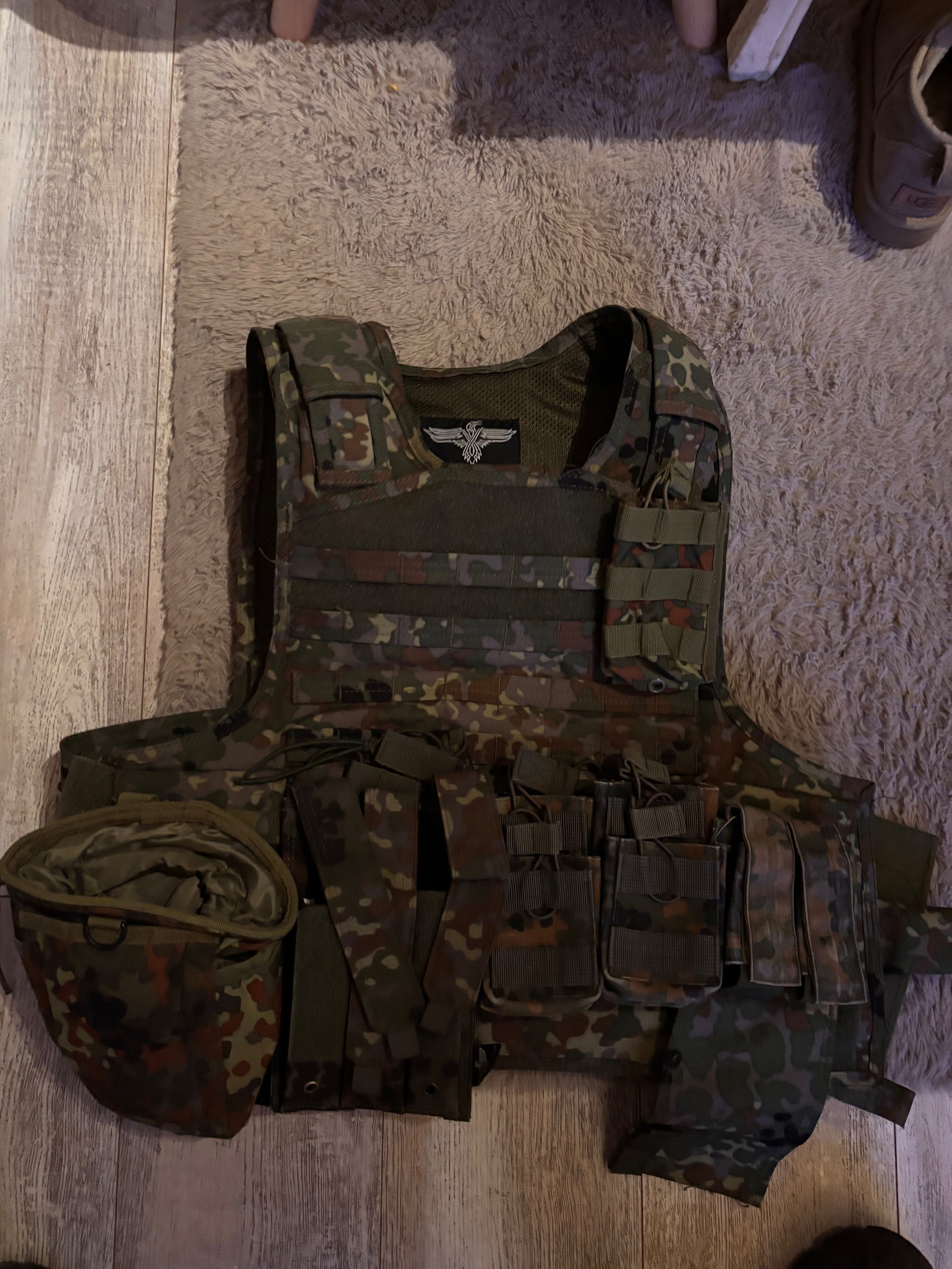 Diverse pouches in de kleuren Flecktarn  erbij zodat je zelf je setup kan samen stellen. Aantal keer gebruikt en daarna overstap gemaakt naar speedsoft waardoor deze niks ligt te doen.
