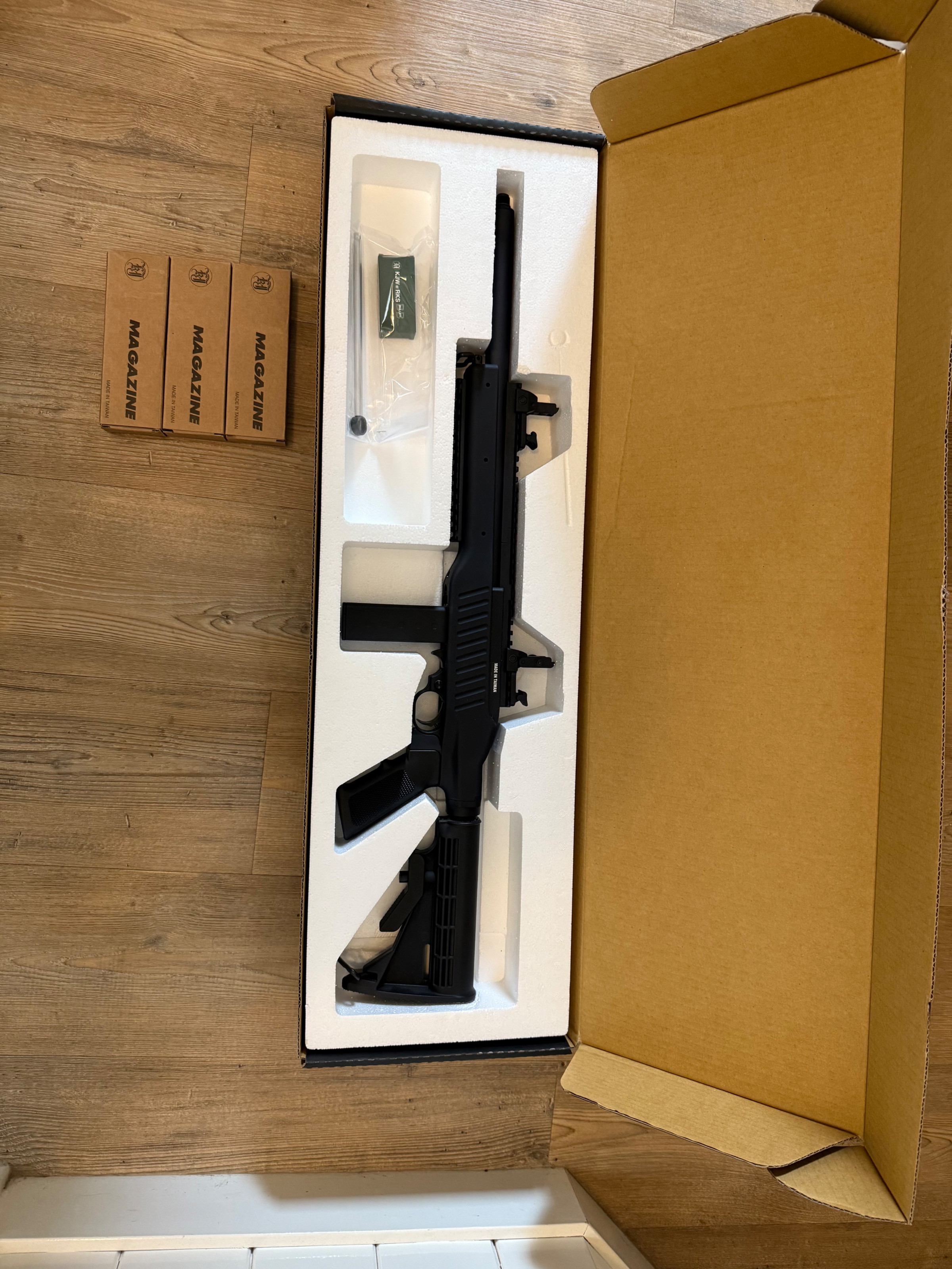 Leuke replica die goed schiet. Zo goed als nieuw in de doos met 3 extra magazijnen nieuw in de doos. Dus in totaal met 4 magazijnen.