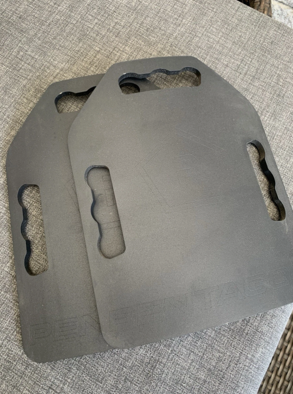 Mit 2x Gewichtsplatten (jew. 4kg) von Pentagon.