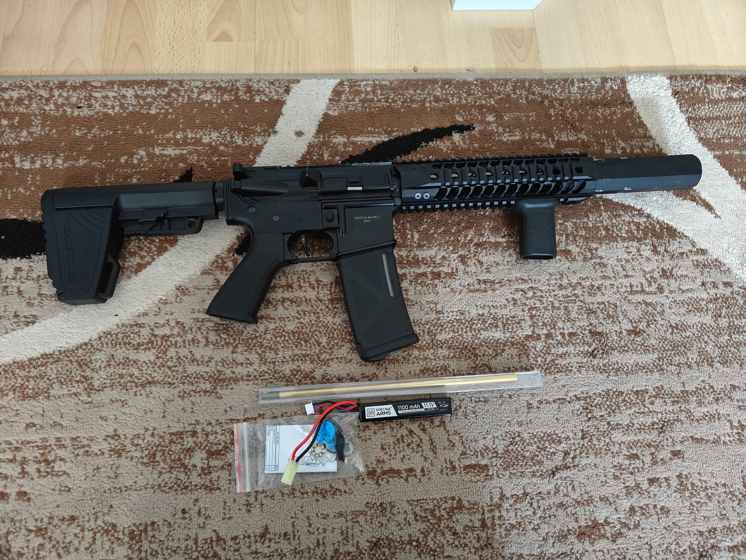A solid DMR M4 replica with upgraded barrel and some internal components.