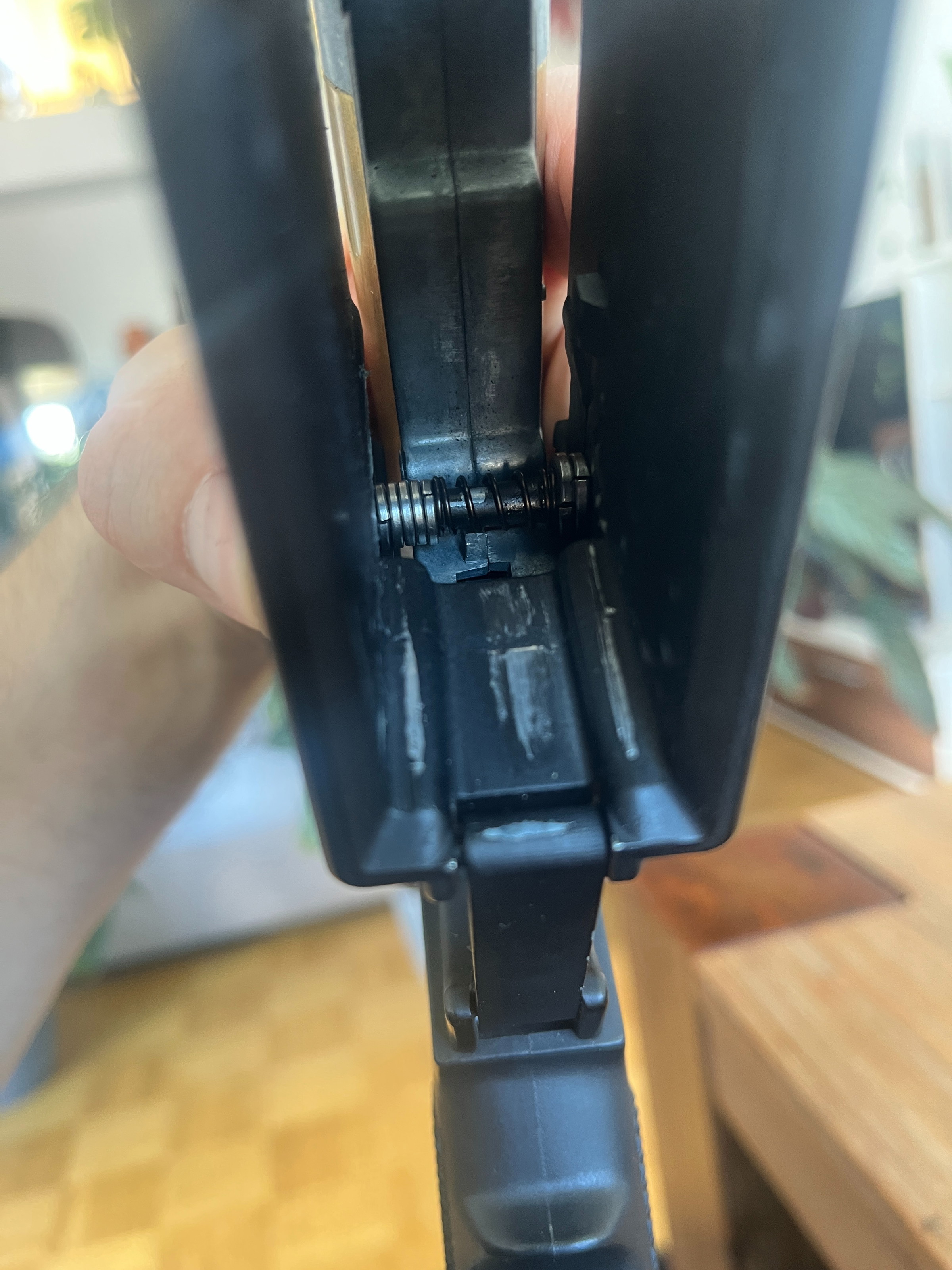 Die SA ist gebraucht und stellenweise repariert, z. B. der Magazinauswurf (siehe Bild). Der Ladehebel hat eine Ersatzfeder (sollte man vorsichtig nutzen, hat aber ohnehin keine wirkliche Funktion). An dem Lauf fehlt glaube ich ein Befestigungsclip, bin mir nicht sicher. Die Funktion ist m. E. dadurch nicht beeinträchtigt. Als ich die SA das letzte Mal benutzt habe hat alles noch super funktioniert. Leider sind Akkus + Ladegerät defekt; müsste neu gekauft werden (schicke ich zwecks Vergleich aber mit). Ggf. müsste auch die ein oder andere Dichtung oder Verschleißteil ausgetauscht werden. Kaufpreis war 550 €, daher jetzt so günstig.
