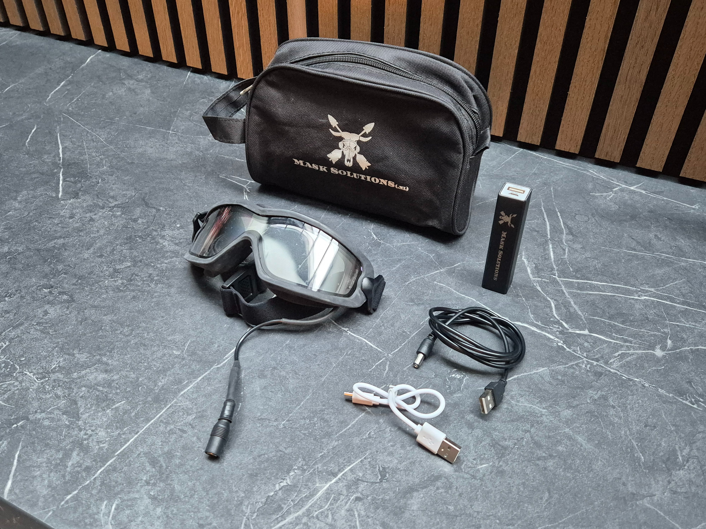 Zeer nette Anti-Fog brik van het merk Mask Solutions. De set is helemaal compleet en nog niet veel gebruikt. Alles werkt ook netjes naar behoren.