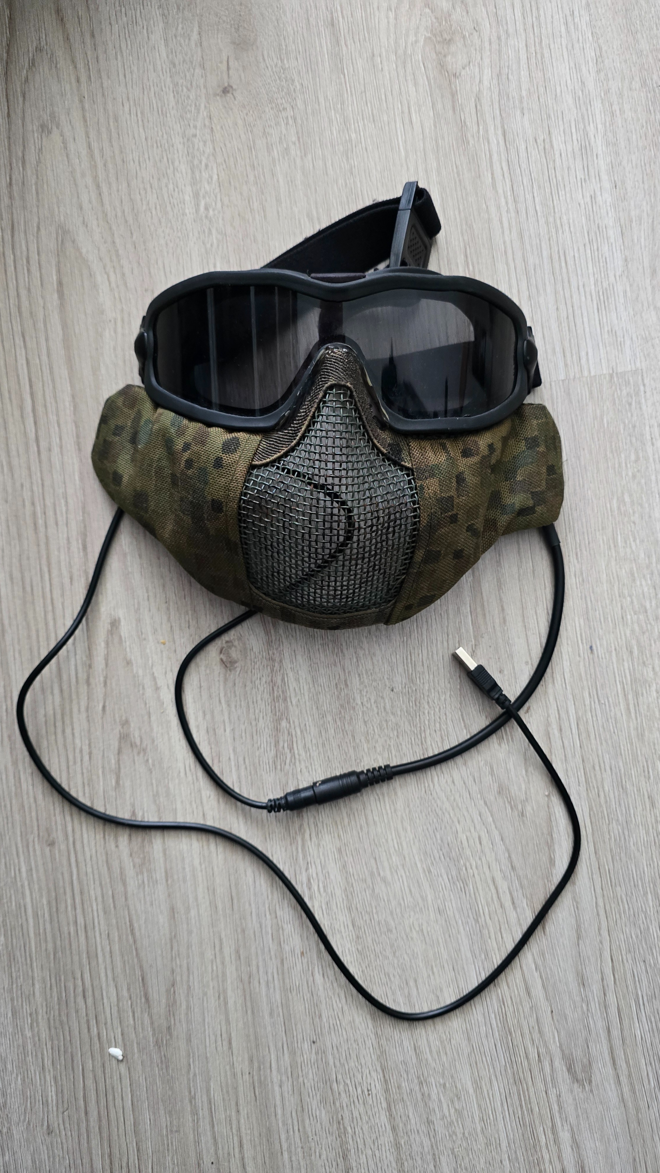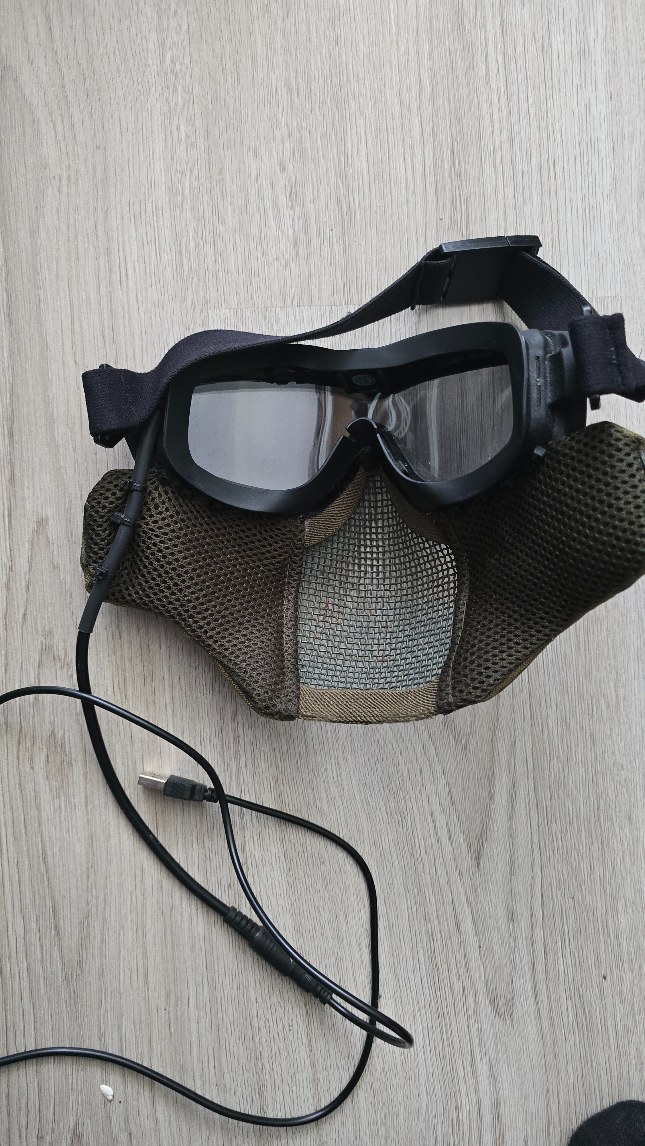 Mask solutions oog bescherming met ventilatie , komt met strap voor om het hoofd , usb aansluit kabel.