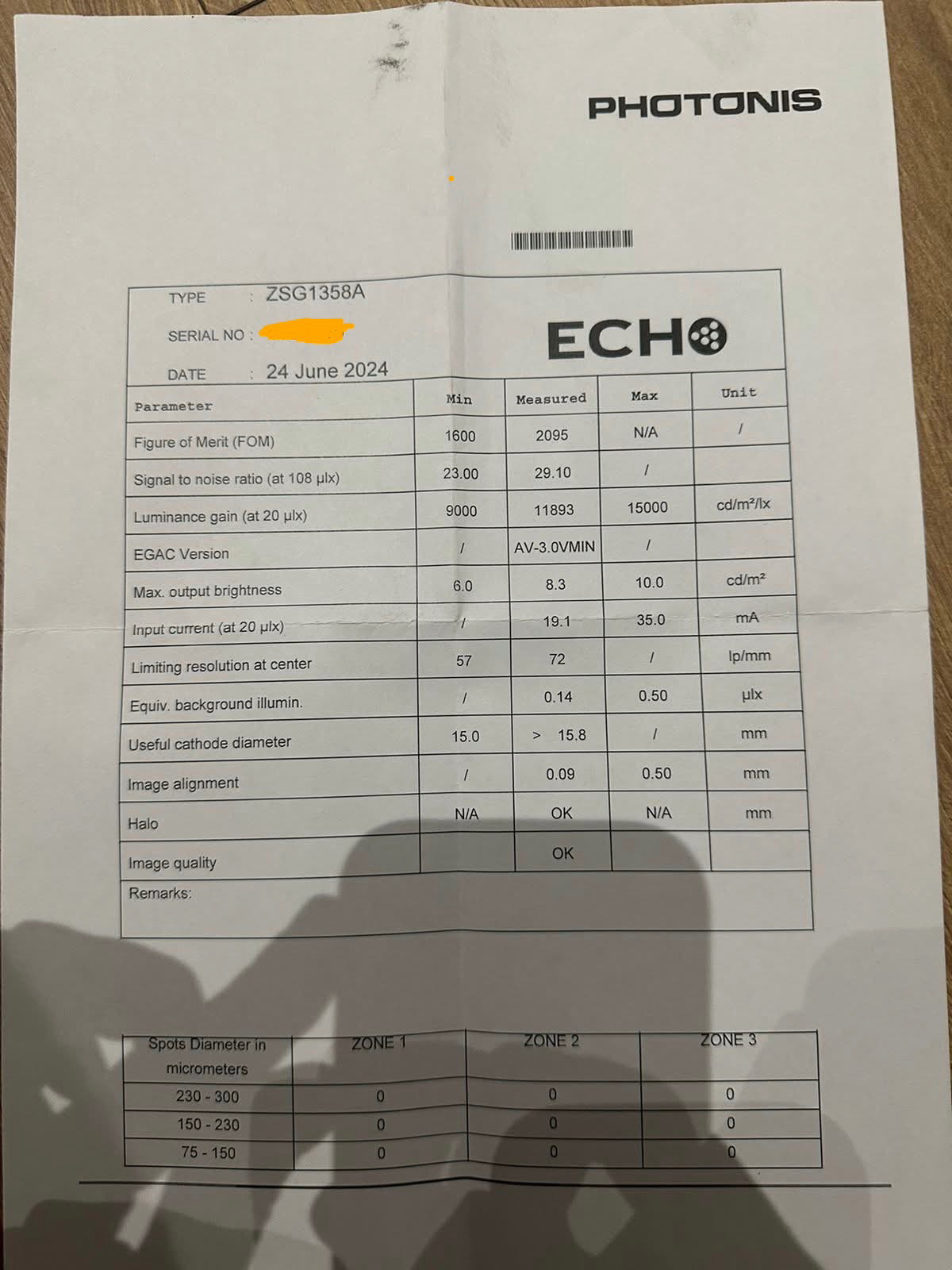 The unit contains a Photonis Echo (ZSG1358A) tube with decent specs.