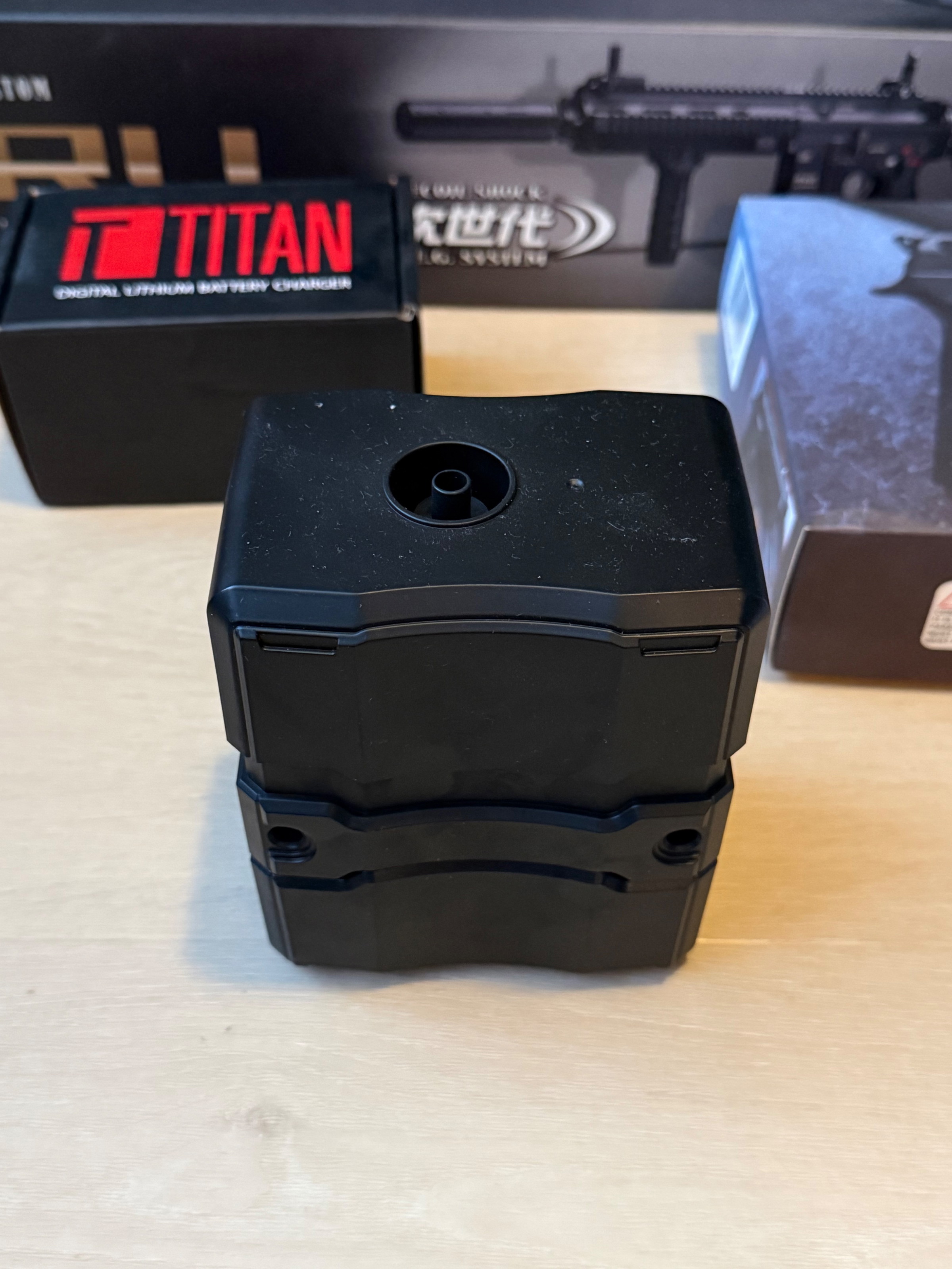 Ik heb een PROMETHEUS batterij converter erop gezet zodat normale lipo batterijen gebruikt kunnen worden. Daarnaast heb ik een richtkijker gemonteerd.