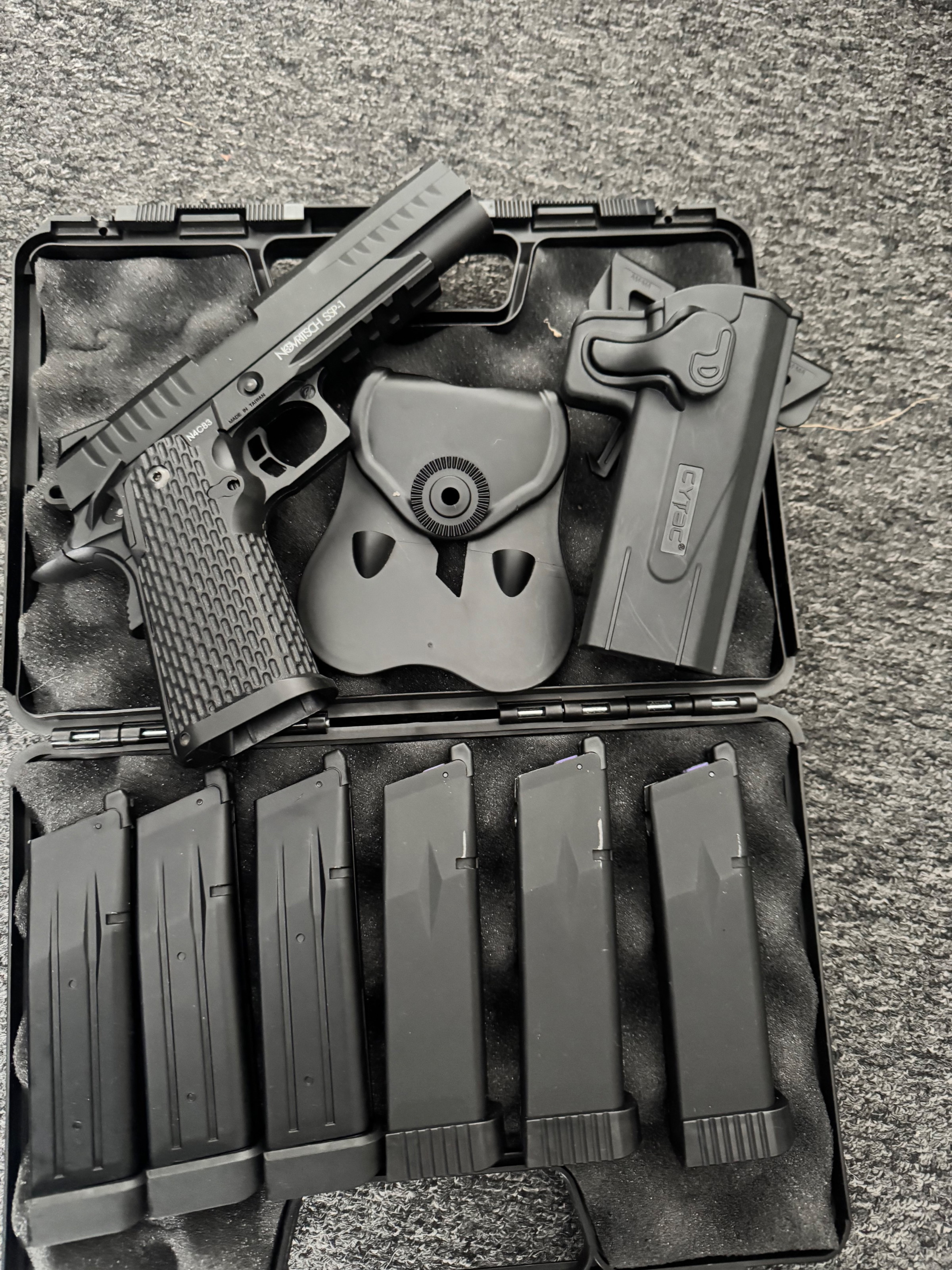 Komt met 6 mags waarvan 3 gas mags en 3 co2 mags. Ook zit er een holster met adapter bij.