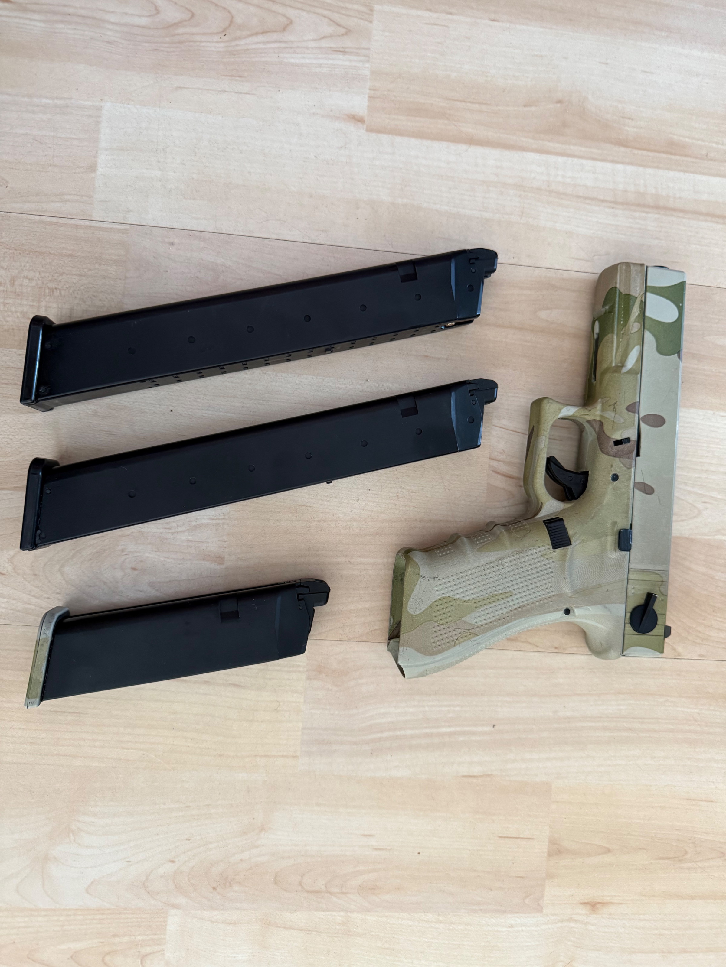 Ik verkoop deze replica omdat beide extended mags lekken bij de input valve. Er zitten extra seals in de doos.
