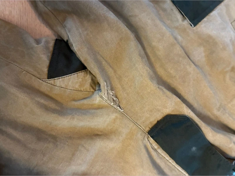- Klein scheurtje bij het kruis, zoals je op de foto kan zien is het vrij klein en gemakkelijk te herstellen.