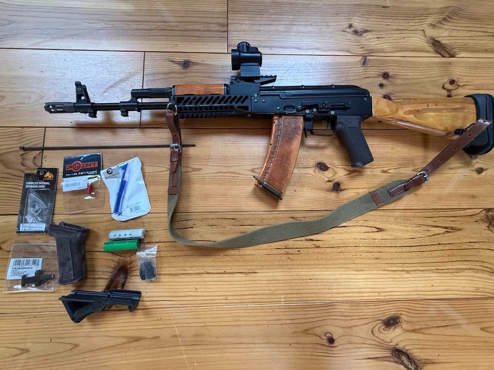 Externally it includes a wood protector, optic mount piece, real sling, Zenitco handguard, modified flash hider, etc.