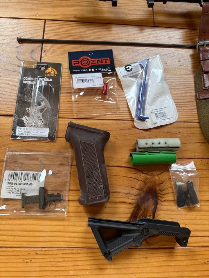 I’m selling an AK based on the older Cyma model with real wood furniture. It has several internal upgrades: barrel, gears, tappet plate, piston, silver wiring, and more.