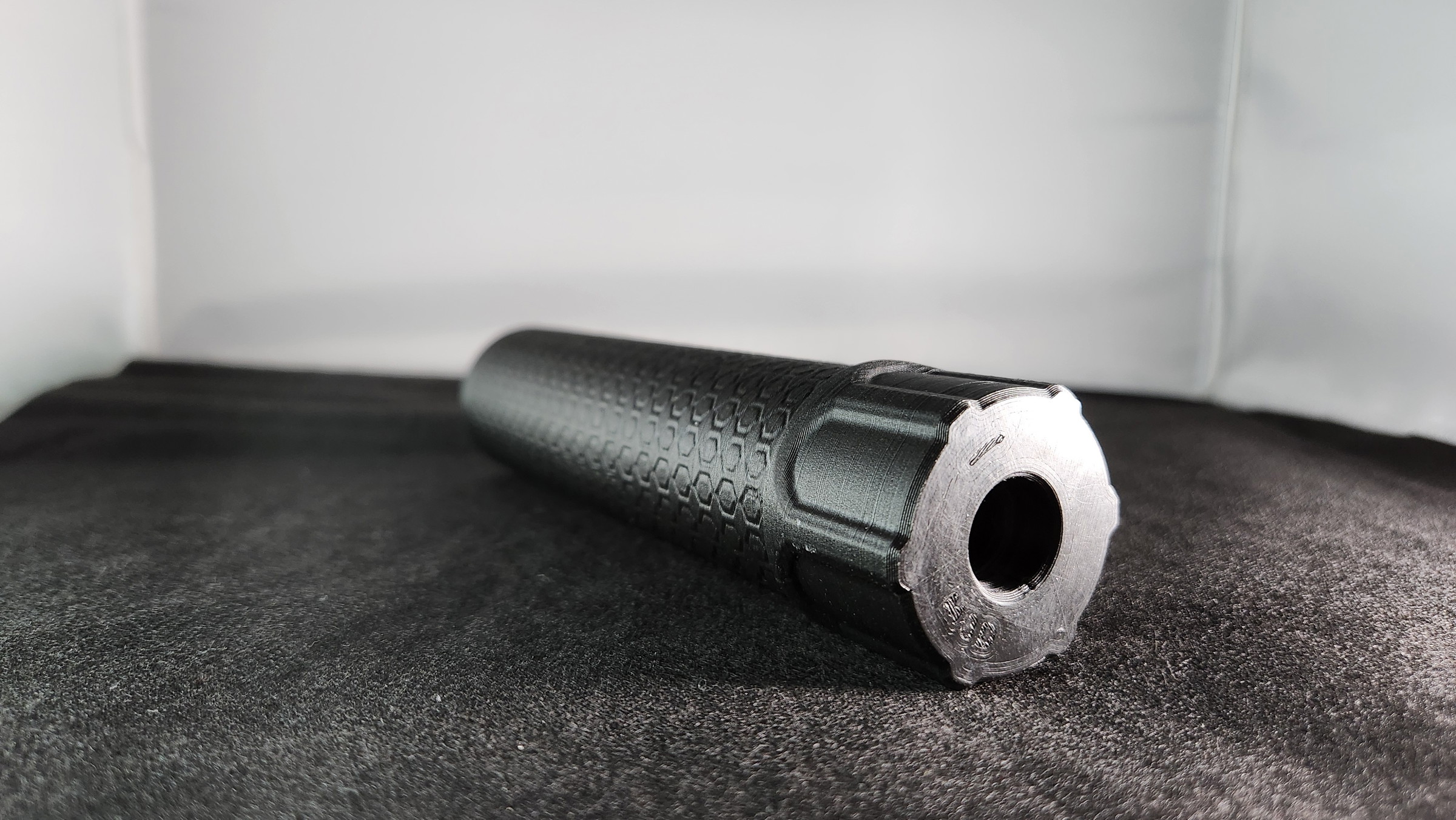 Crafted for 14 mm CW threads, the ShadowStrike suppressor is a compact powerhouse, measuring 159 mm in length with a sleek 39 mm outer diameter. Field-tested on M4 platforms across diverse environments, this suppressor delivers exceptional sound reduction, dropping noise levels from ~90 dB to ~83 dB. Its low-profile design ensures consistent acoustic performance without compromising maneuverability.