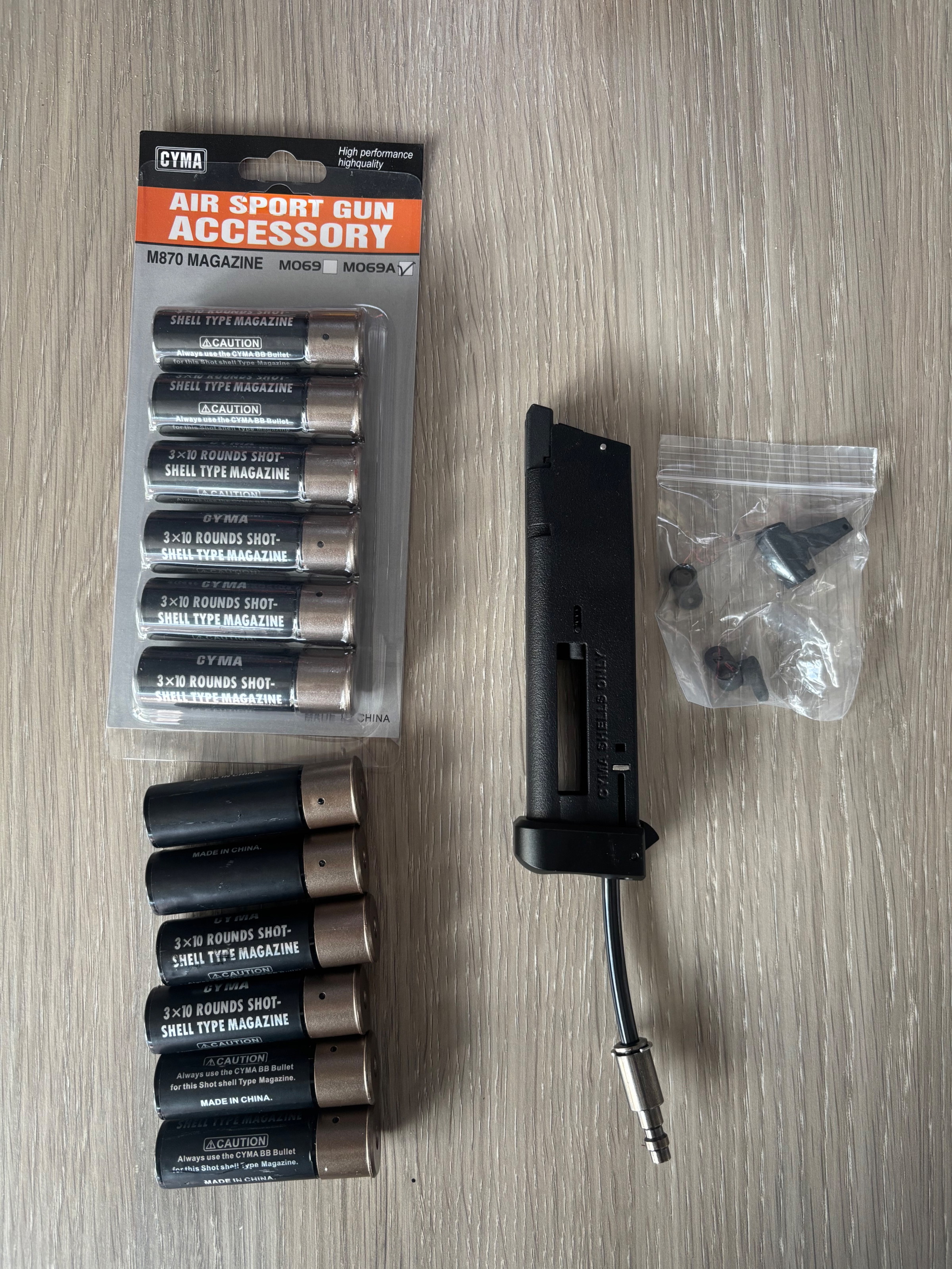 Hierbij verkoop ik men highcapa  shotgun shell adaptor met 12 shells