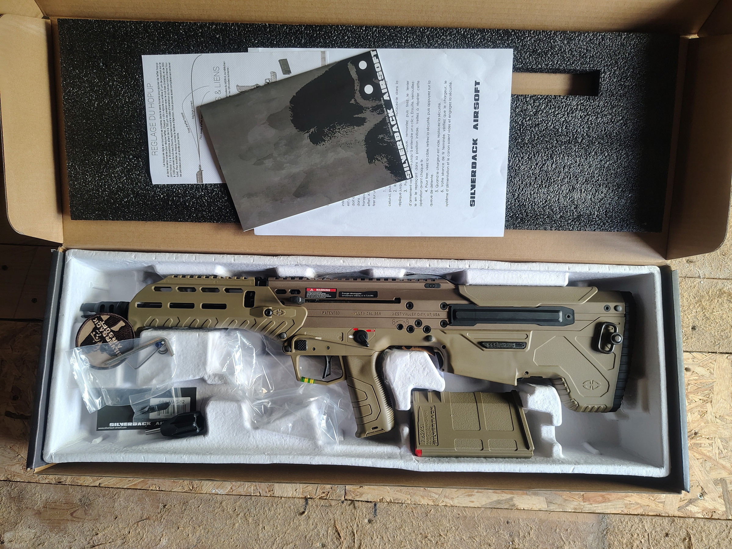 Vendu avec un adaptateur m4 imprimé 3d monté sur le mdrx qui fonctionne nickel (un peu trop bien, j'ai eu une fois un mag un peu chiant à retirer), le mag d'origine en 308, et tout le bundle d'origine