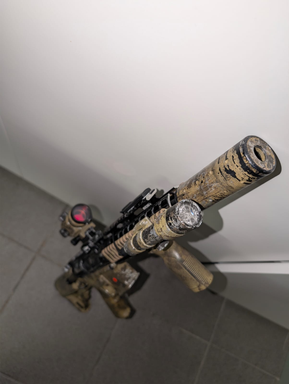 Origineel betreft het een Specna Arms SA-B12, handguard en outerbarrel zijn vervangen.