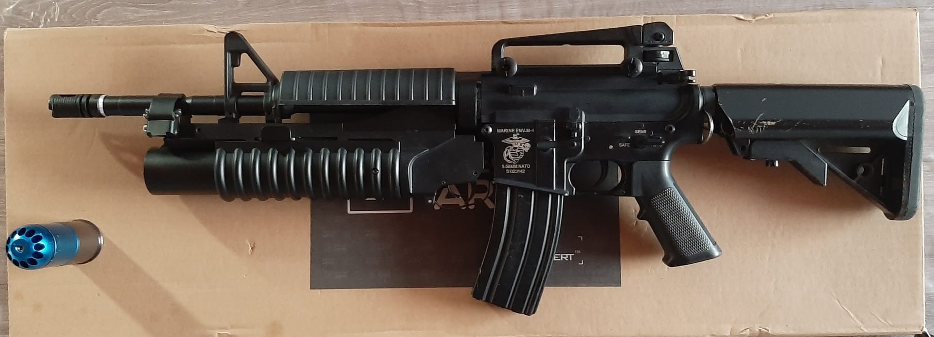 Komt met 1 highcap magazijn, 1 specna arms batterij met oplader, 1 grenade shell op gas en originele doos.