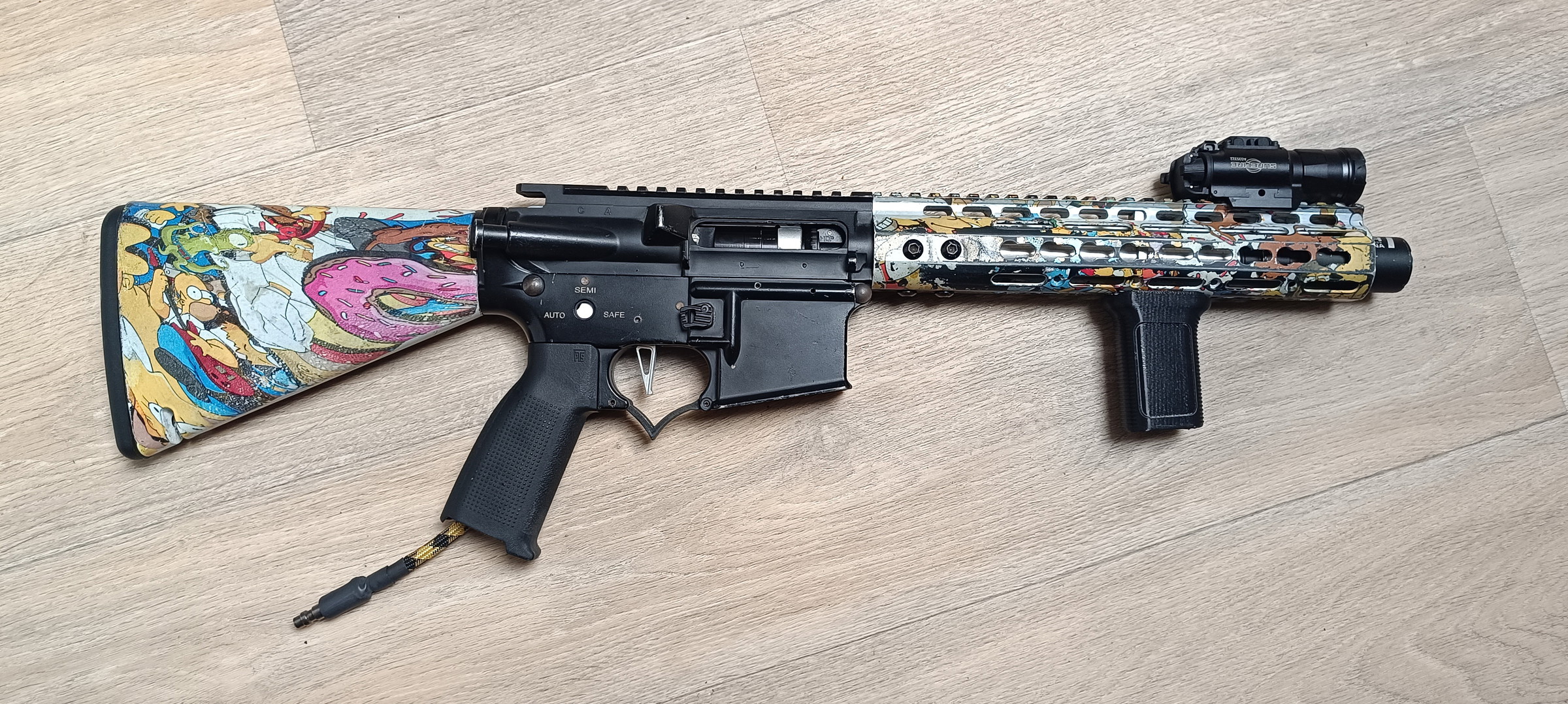Selling my replica for CQB. Perfectly working. Cant remember the body what came from but its 5 years old now. Freshly fitted with a used polarstar jack from my other replica and specna arms TDC hop up unit. Adding 3D printed grip, flashlight and tracer unit. Very light trigger pull. The body is still very sturdy, no loose or play. Has a starting small crack near the front pin but It was no problem for maybe 4 years of usage. Shooting very nicely even for outdoor games