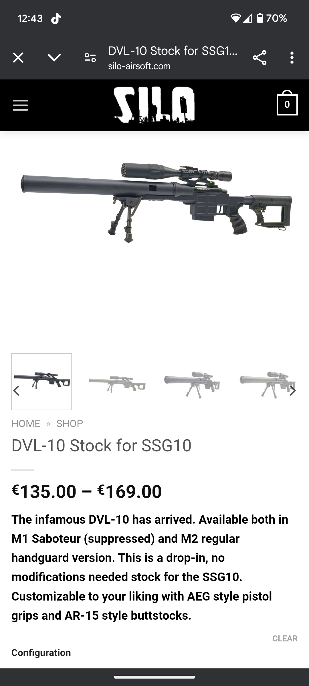 Wordt samen geleverd met 3 magazijnen, een case en de lange en korte outer en inner barrel. Ook een DVL-10 stock van Silo t.w.v. 135 euro.