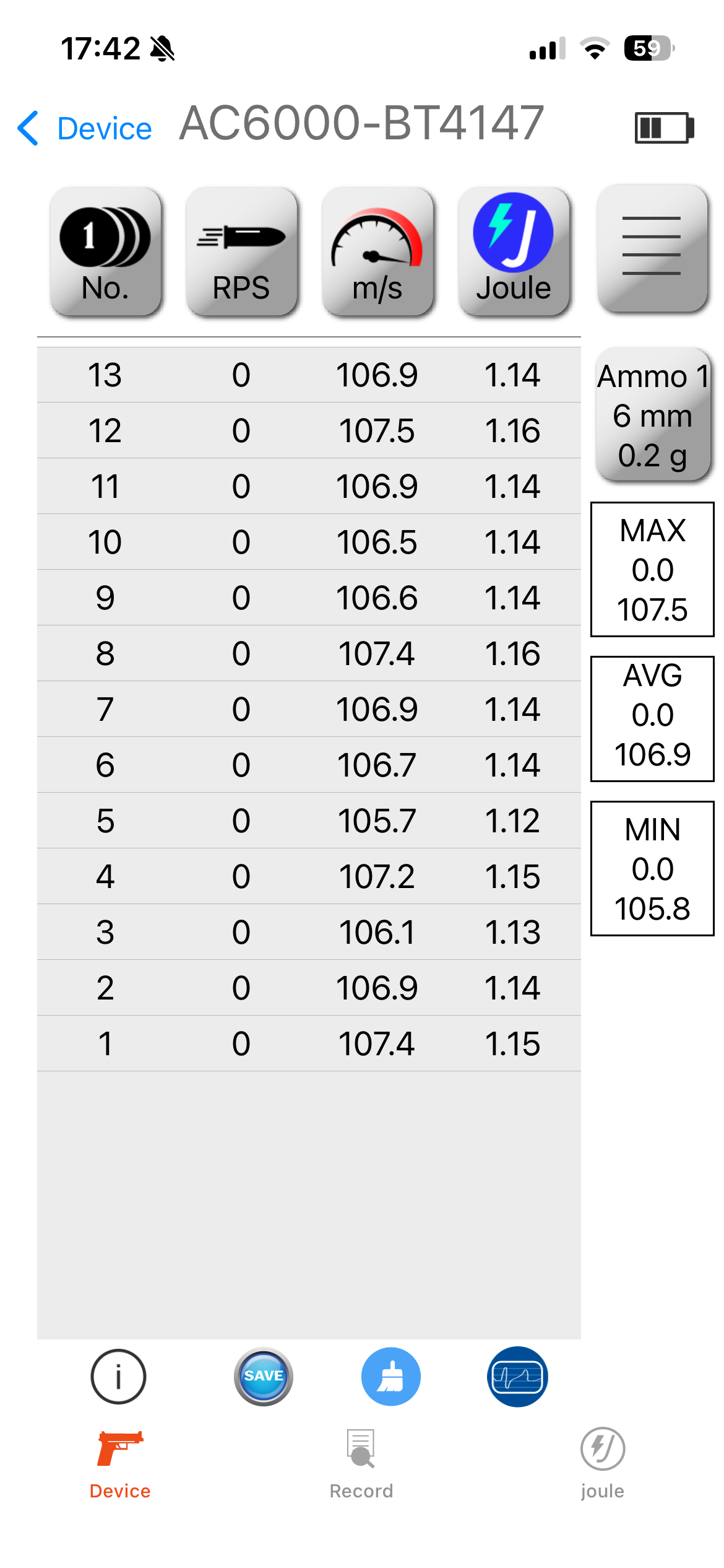 heeft een mooie constante FPS van 1 Joule Zie foto Dit was met mijn Hoofd veer word niet mee geleverd is een 110 Veer