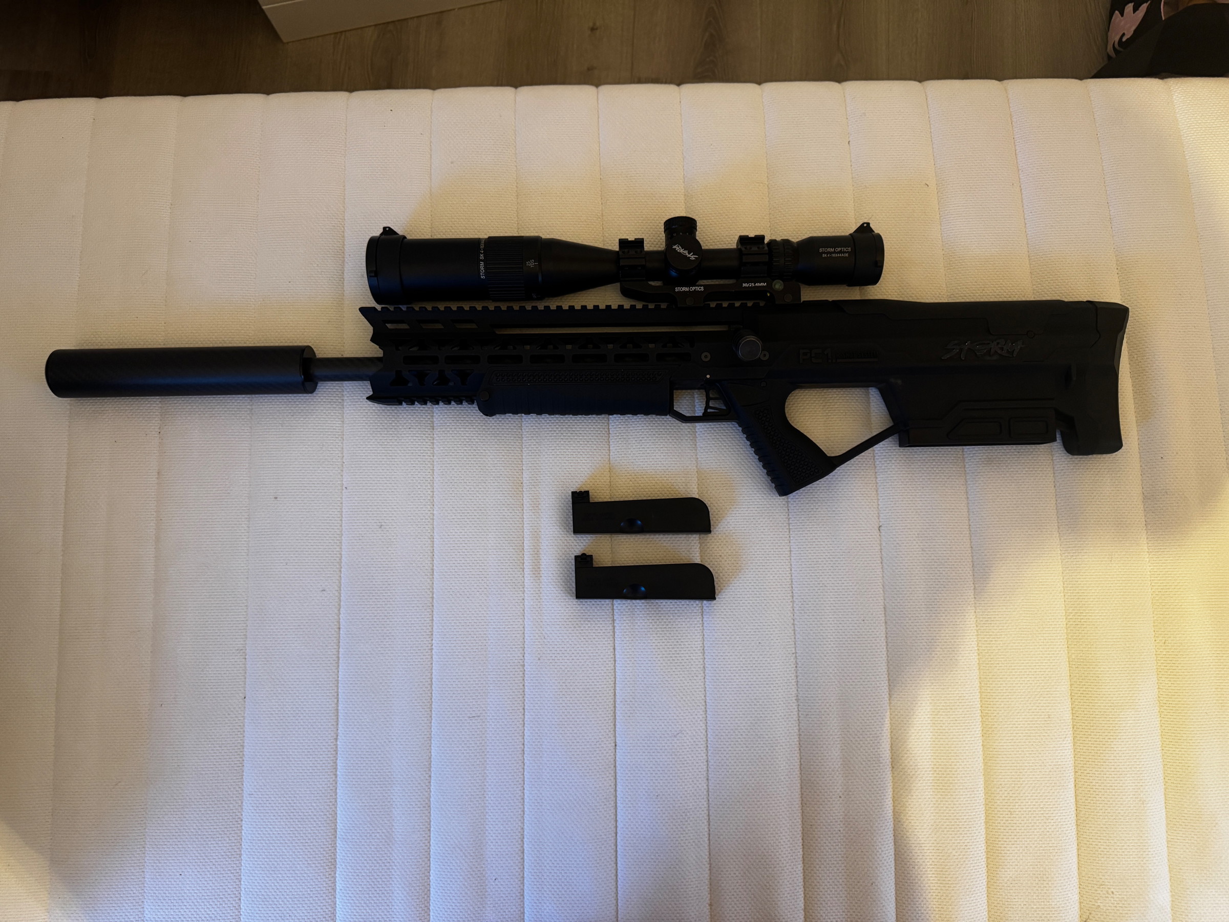 Storm pc1 deluxe pack te koop in perfecte staat. Licht gewicht en een zeer goede sniper. Uniek met het het rshot systeem. Leuke replice die mooie afstanden haalt. Kan opgehaald worden of verzonden worden.