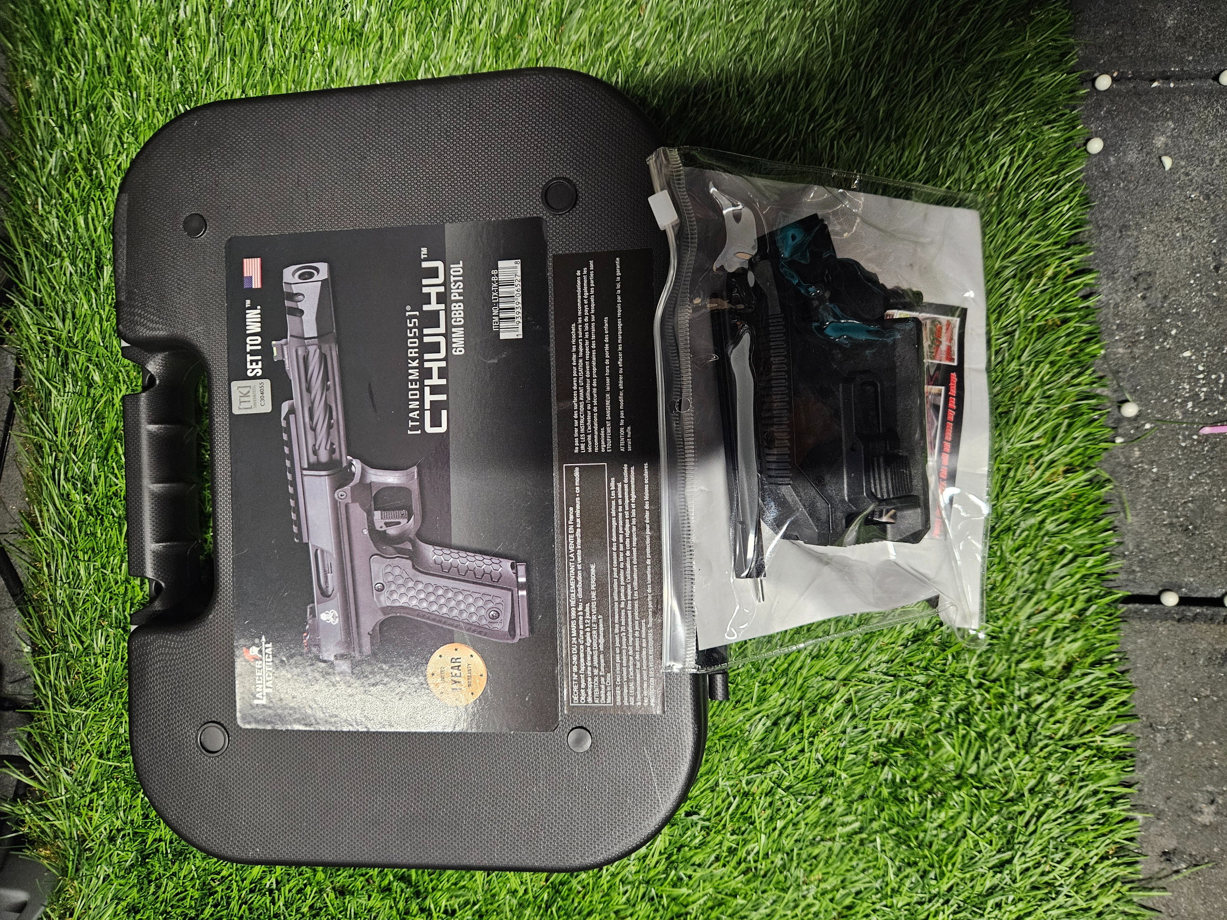 Dit pistool valt direct op door zijn agressieve design met rode accenten. De CTHULHU is een gelicentieerde Tandemkross replica die draait op green gas met blowback. Door de polymeer constructie en 22mm Picatinny toprail krijg je een lichte maar complete sidearm die geschikt is voor zowel CQB als outdoor velden.