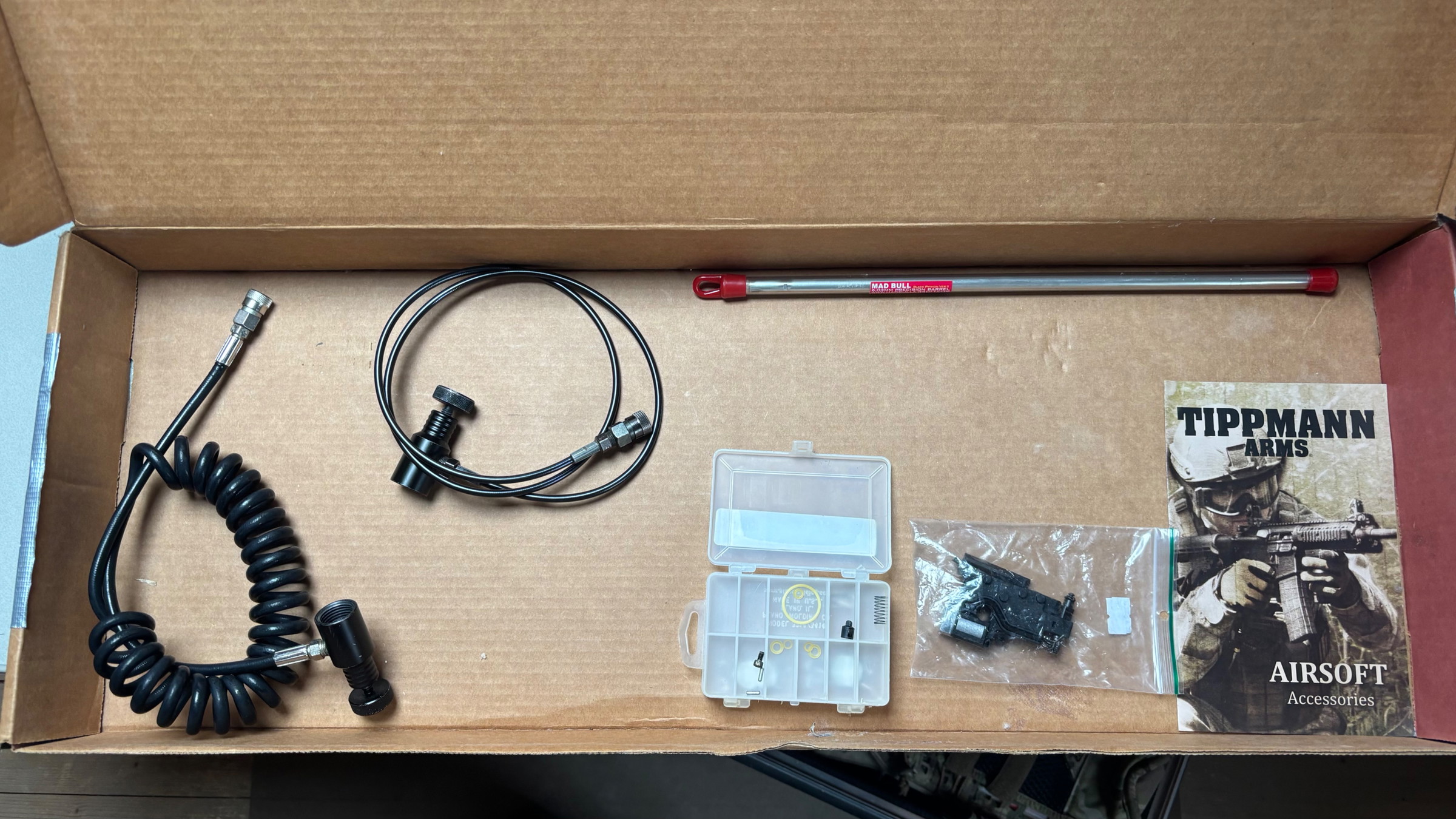 Onlangs heb ik de loop los willen maken, door het onjuist demonteren hiervan heb ik per ongeluk een van de 2 pootje van de upper reciever gebroken zoals te zien is op de foto. Bekend kwaaltje bij deze replica's. De replica werkt verder nog prima. Mijn advies zou zijn om hem te kopen als donor replica voor iemand die ook een Tippmann heeft, aangezien alle ander parts nog in goede staat verkeren.