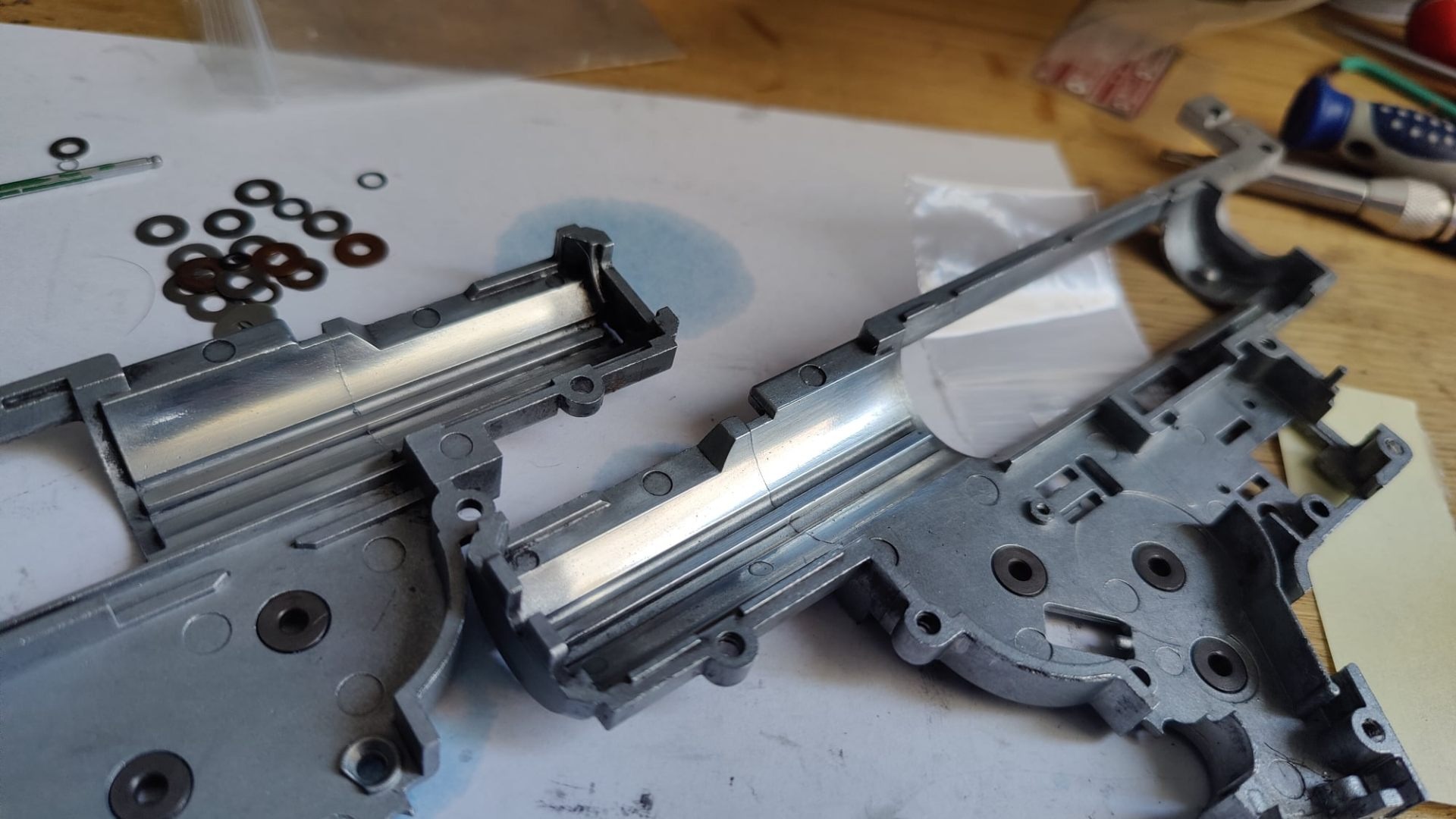 Radiuses were done, and the piston and recoil weight guides were polished.