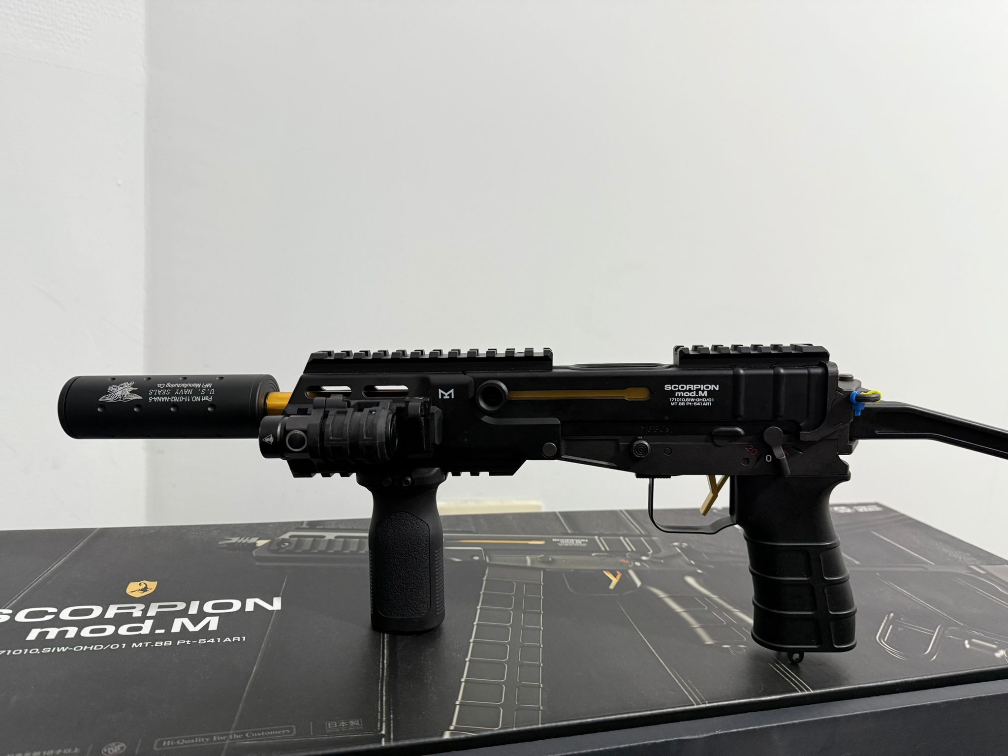 Te koop: Tokyo Marui Scorpion Mod M — slechts 1–2x gebruikt. Voorzien van Laylax 6.0 inner barrel en Laylax bucking voor betere nauwkeurigheid en consistentie. Originele barrel, originele bucking en doos zitten erbij. Interesse? Stuur een bericht voor extra foto’s of ophalen.