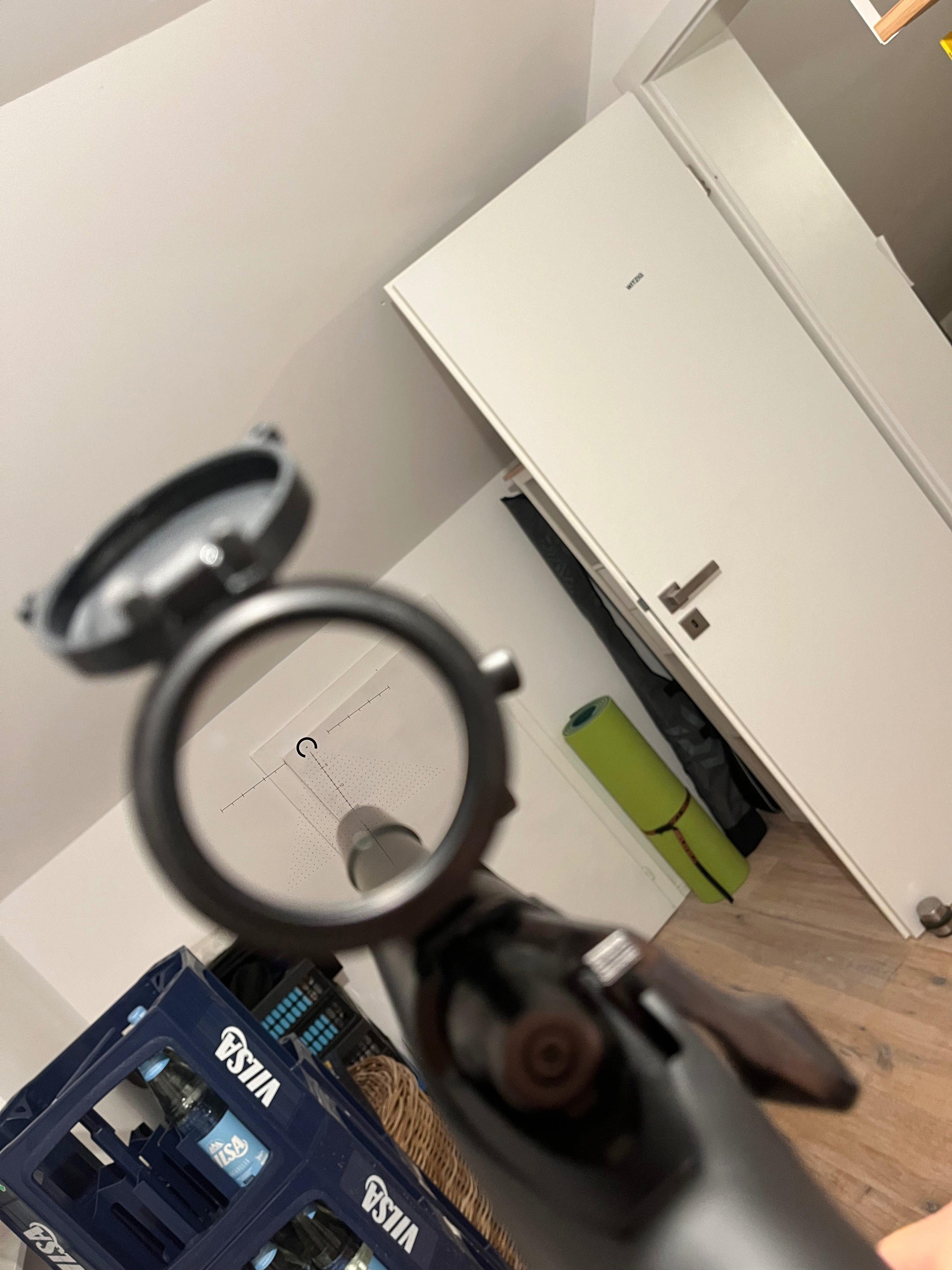 In der Optik ist kein klassischer, kill Flash (mit enthalten) sondern eine Plexiglaslinse, die ich mir anfertigen lassen habe, um eine klare Sicht zu haben. Die Wabenstruktur des Kill Flash haben das Licht reflektiert.