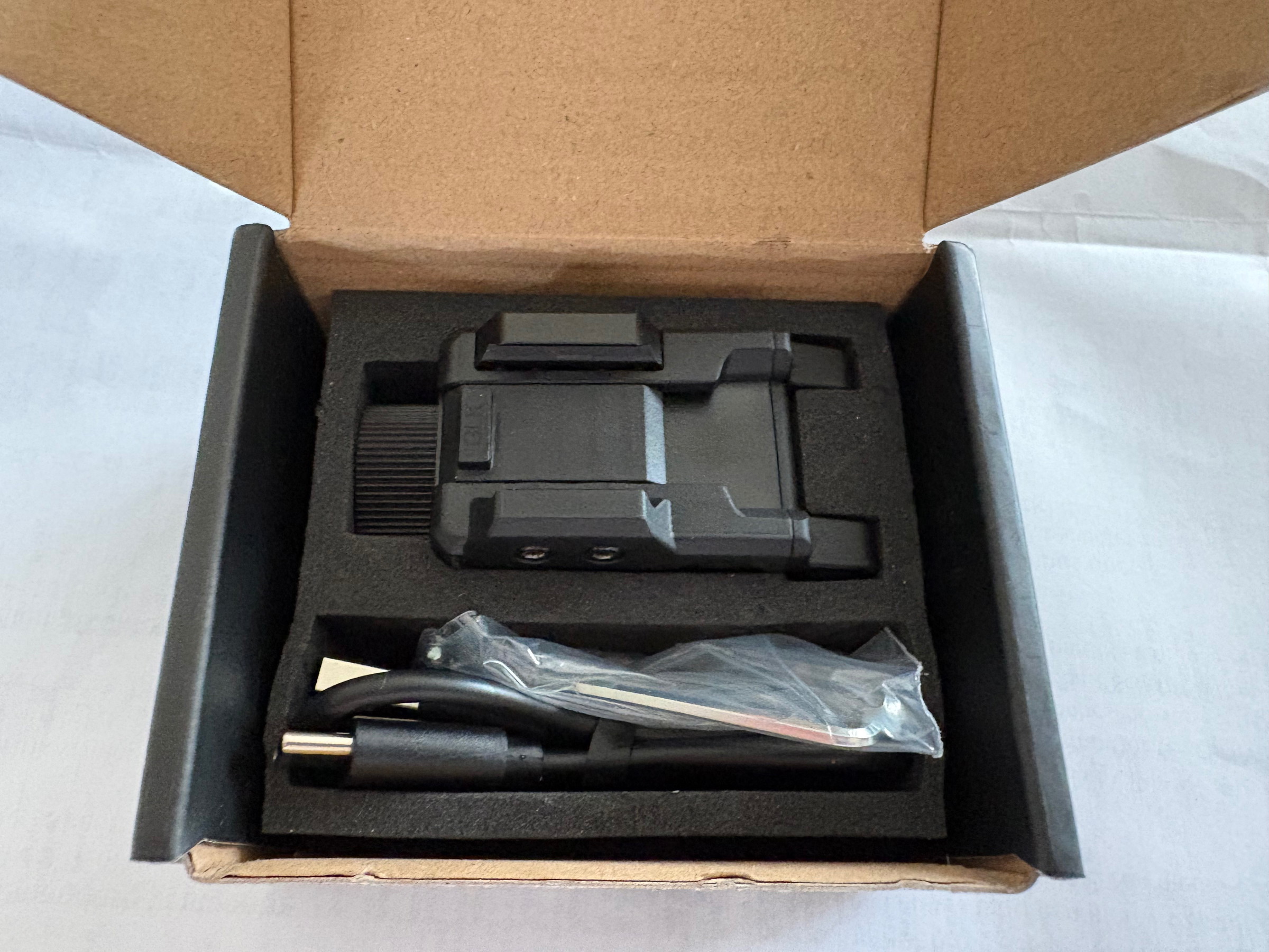 Deze zaklamp/laser combinatie weegt slechts 65 gram en wordt bevestigd via een 22mm Picatinny/Weaver-montage. De unit laadt op via USB-C, waardoor je tussen skirms door eenvoudig kunt bijladen. Het compacte ontwerp in zwart past op vrijwel elke replica met een compatibele rail.