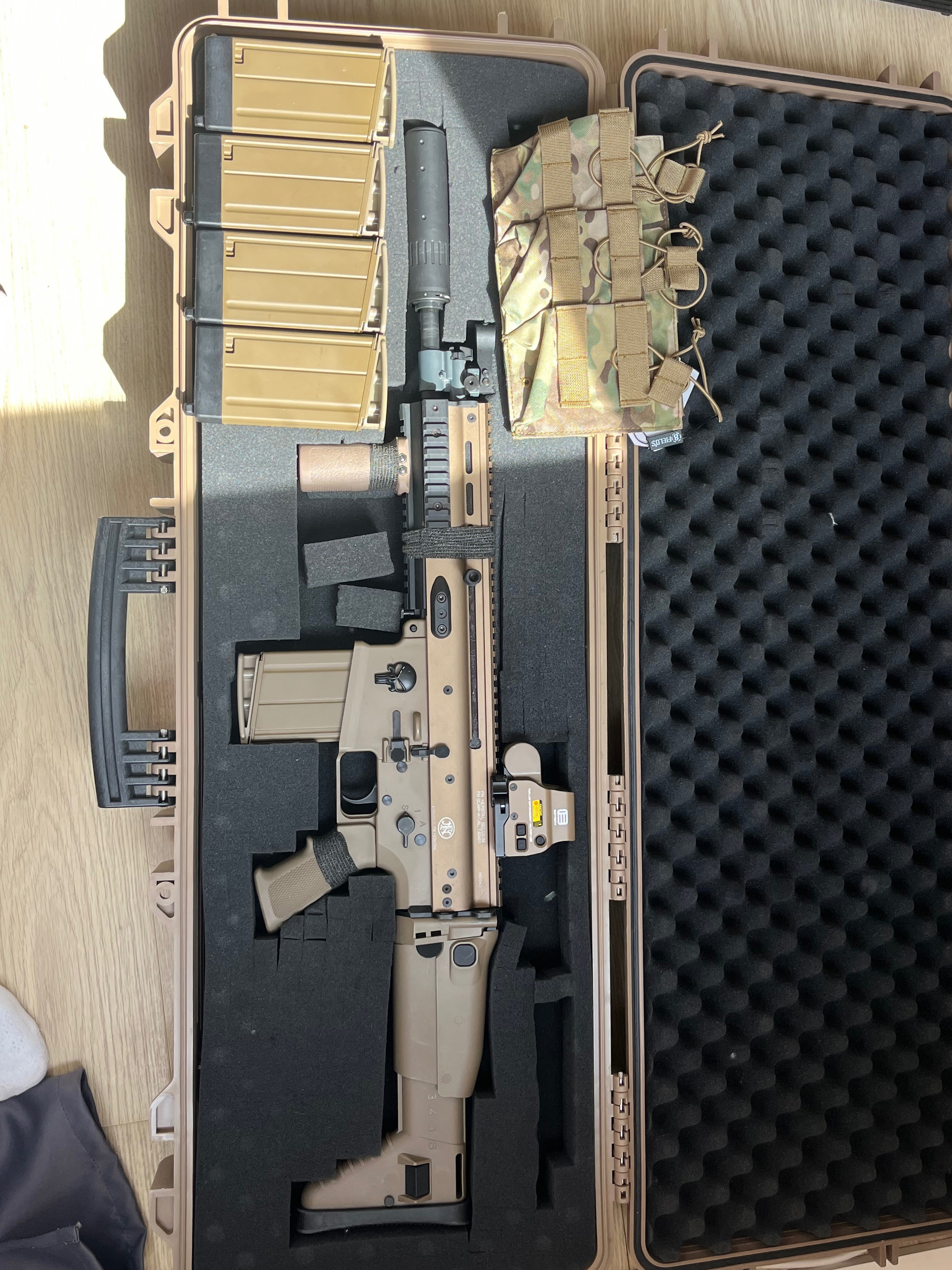 VFC Scar-H with supressor, 5 mags with two being brand new and not used (orderd from taiwan). I bought this replica as a second gun, never used it. I dont airsoft enough so i think ill stick to aeg. Gbb is just too much hassle for me. Comes with:
