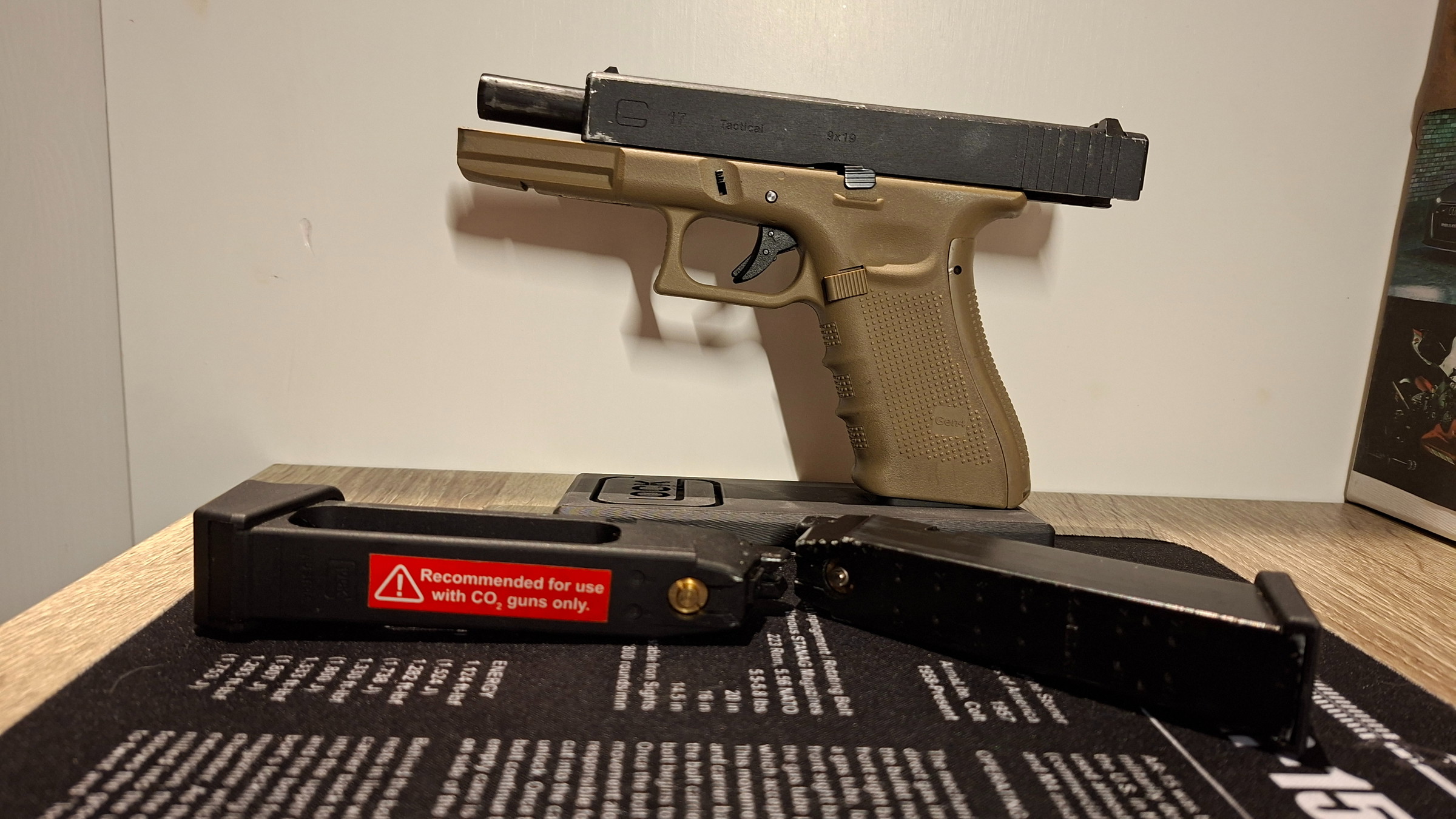Leuke glock 17 gen 4 black & tan van het merk WE.
