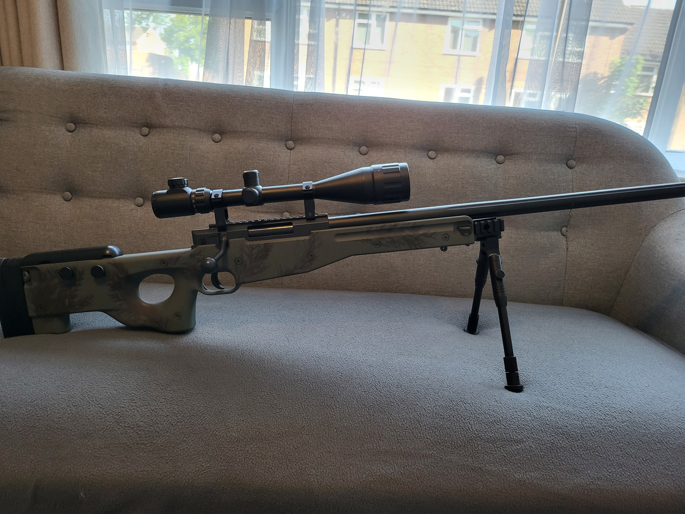 Well MB01 airsoft sniper used only a handful of times. Customised Camo Paint job.. FPS ranges from 460 to 490 with .2 bb's i use 3.8 or 4s. It's been upgraded by myself with these parts..