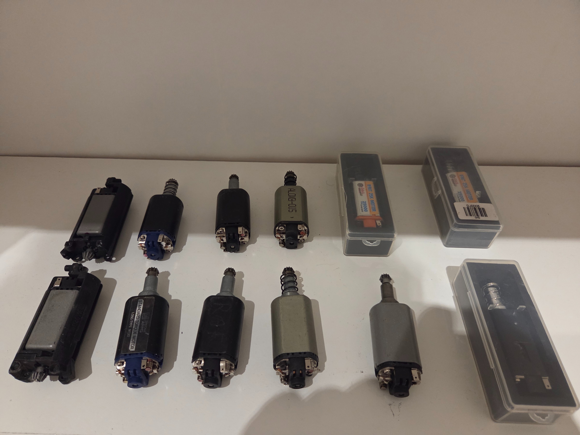 Te koop: 12 airsoftmotoren, afkomstig uit verschillende AEG’s.